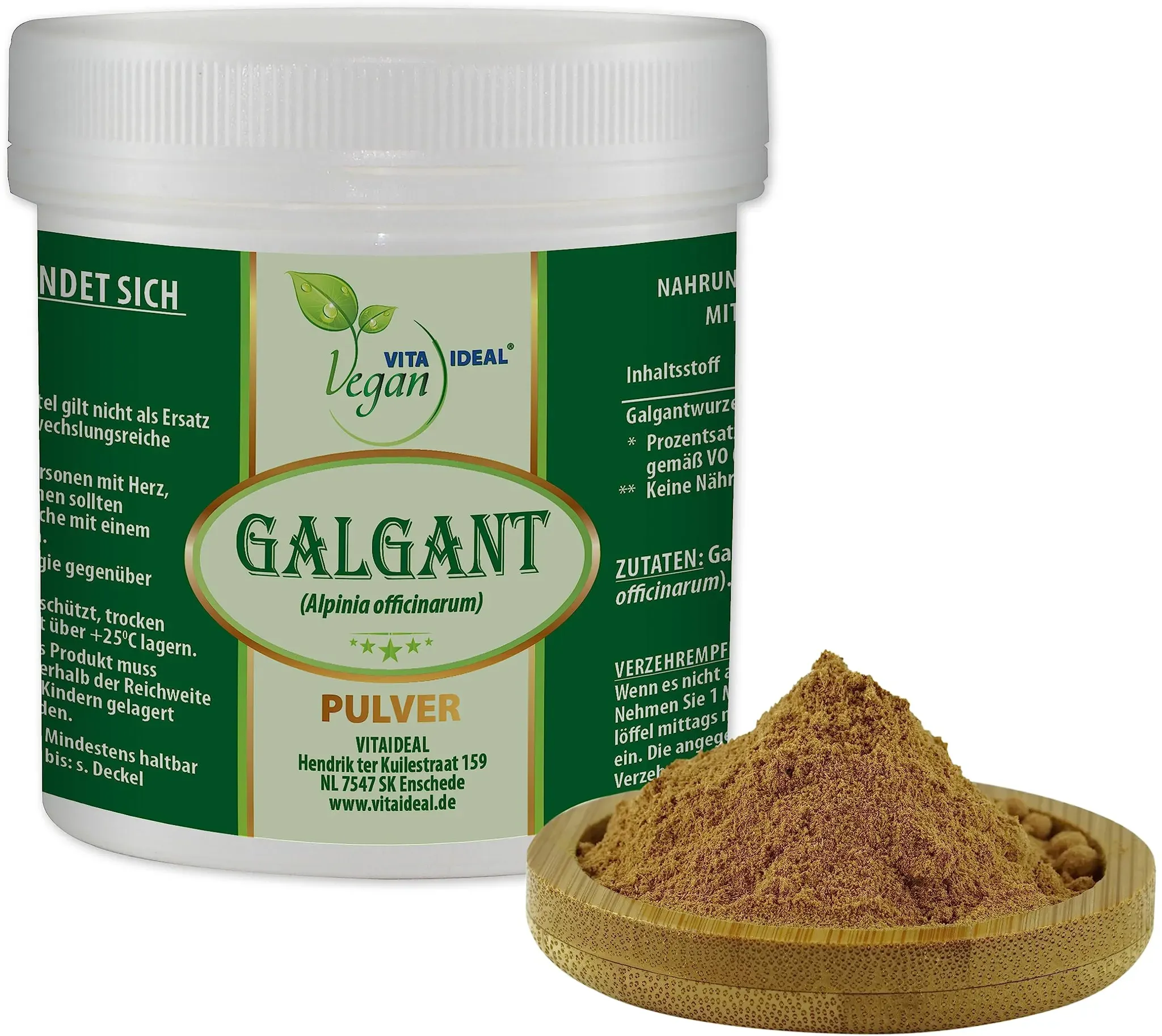 Verfügbarkeit: Auf Lager - Kategorie: Nahrungsergänzungsmittel - VITA IDEAL - GTIN:4260631954554 - ZUTATEN: Galgant Wurzel (Alpinia officinarum) geschnitten.Unsere Zutaten sind natürlich, pflanzlich und ohne Zusatzstoffe. ANWENDUNG UND EMFEHLUNG FüR DIE ZUBEREITUNG: Pro Tasse (200ml) 1-2 Teelöffel von der Zutat mit frischem, immer sprudelnd kochendem Wasser übergießen und zugedeckt ca. 5-8 Minuten ziehen lassen. - Nur so erhalten Sie ein sicheres Lebensmittel. - Vielseitig verwendbar, geeignet beispielsweise zur Herstellung von Tees, Aufgüssen, Tinkturen und ölen. PRODUKT-QUALITäT: Unsere Galgantwurzel hält in der gesamten Wertschöpfungskette außergewöhnliche Standards ein und gewährleistet so eine gleichbleibend hohe Qualität bei jeder Verwendung. PRODUKT-SICHERHEIT: VITAIDEAL ist HACCP zertifiziert - nach EU Standarts - TüV geprüft in MISCHEN, ABFüLLEN & VERKAPSELN. KUNDENZUFRIEDENHEIT: Die uneingeschränkte Kundenzufriedenheit steht bei uns im Vordergrund. Bei Fragen, Anmerkungen, oder Kritik kontaktieren Sie uns bitte. Um Sie zufriedenzustellen und als Kunden zu behalten, werden wir mit Hochdruck an einer Lösung arbeiten. Nur so können wir uns VERBESSERN und WEITERENTWICKELN. VITAIDEAL steht für: KUNDENZUFRIEDENHEIT, QUALITäT, FAIRE PREISE und WEITERENTWICKLUNG. Wir erweitern unser Sortiment stetig. Schauen Sie sich auch gerne die anderen VITAIDEAL-Produkte an. - 7,95 Euro bei Amazon Marketplace Health & Personal Care - gefunden von billiger.de Dieses Produkt bietet Galgantwurzel in Pulverform, was praktisch für die schnelle Zubereitung von Tees oder als Gewürz ist. ![]() ![]() VITA IDEAL Vegan® GALGANT - Wurzel 100g PULVER - Alpina officinarum - Tagesportion 1020mg GALGANTWURZEL gemahlen - natürlich, pflanzlich & ohne Zusatzstoffe, Inklusive Messlöffel.