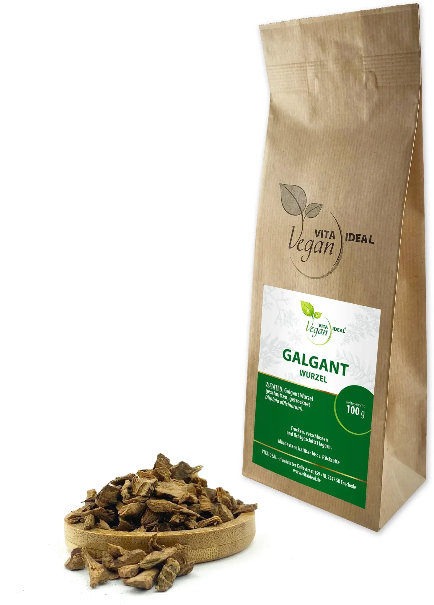 Zustand: Neu - 29,00 € / kg - Früchte- & Kräuterteemischungen - 1000Kräuter 1000Kräuter, Jerwan24 GbR, Blumenweg 12, 59457 Werl, Deutschland - - EAN: 7426760966920 - Galgantwurzel gemahlen. Wissenschaftlicher Name: Alpinia officinarum. Lateinischer Name: Galganum. Galgant findet Anwendung als Gewürz- und Heilpflanze. Er ist in verschiedenen Gewürzmischungen wie Curry, Ras el Hanout oder Wurstgerwürzzubereitungen Bestandteil. Gerne wird Galgant auch für die Likörzubereitung verwendet. Ein 100% naturreine Heilpflanze: Ohne Geschmacksverstärker, ohne künstliche Zusätze, ohne Zusatz von Aromen, ohne Salz- und Zuckerzusatz, ohne Rieselhilfen, vegan. Zutaten: Galgantwurzel, gemahlen. Lagerung: Kühl, trocken und lichtgeschützt. Wichtiger Hinweis: Auch Heilkräuter können Nebenwirkungen haben, deshalb sprechen Sie vor Anwendung mit Ihrem Arzt oder Apotheker! - Verkäufer: 1000Kräuter (Frei Haus ab 50 Euro in Deutschland) im amazon.de Marketplace Eine preisgünstige Option für geschnittene und getrocknete Galgantwurzel, ideal zum Probieren oder für den gelegentlichen Gebrauch. ![]() ![]() VITA IDEAL Vegan® GALGANT - Wurzel 100g geschnitten & getrocknet - Alpinia officinarum - GALGANTWURZEL Kräuter Tee & Aufguss - Natürlich, pflanzlich & ohne Zusatzstoffe.