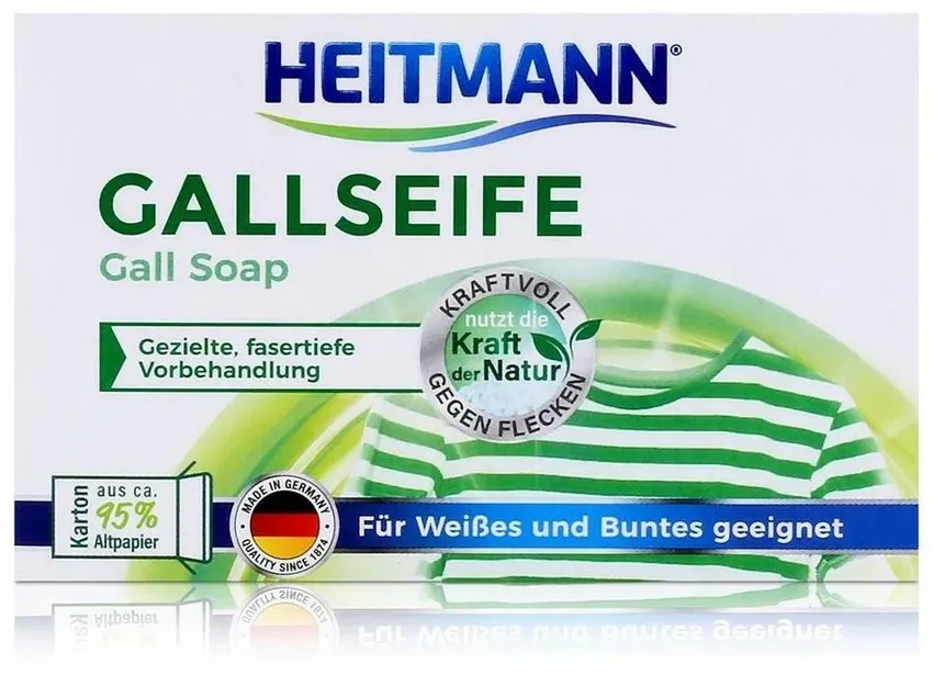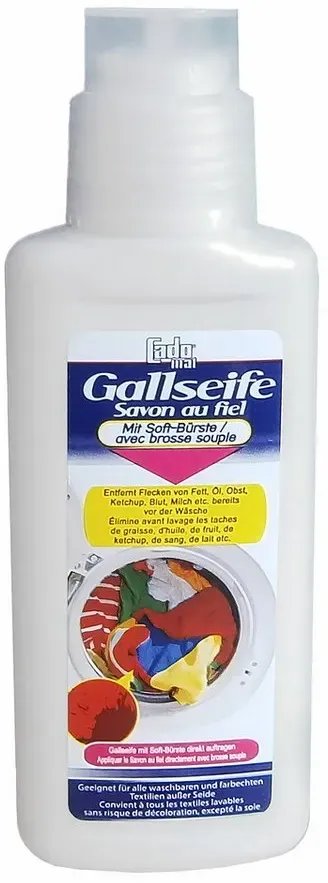 14 Händlerangebote bei billiger.de - Kategorie: Waschmittel - Heitmann - Merkmale: Anwendungsbereich: Kleidung Fleckenart: Rotwein, Obst, Gras, Kaffee, Blut, Fett, öl, Soßen, Make-up, Tinte ---------------------------------------- weitere Produktinformationen: Ausführung: Stück Hautverträglichkeit: dermatologisch getestet Fleckenentferner sicher verwenden. Vor Gebrauch stets Kennzeichnung und Produktinformation lesen. Die Farbechtheit an verdeckter Stelle prüfen. Inhalt: 100g, ---------------------------------------- sonstiges: entfernt Flecken wie Blut, Fett, öl, Soßen, Eiweiß und Make-up mühelos von allen Kleidungsstücken, für Weißes und alle Farben, für alle Temperaturen, zum Vorbehandeln, nutzt die Kraft natürlicher Galle,Fleckenentferner,Reinigungsbedarf,Reinigungsmittel,Reiniger,Putzmittel,Sauerstoffbleiche,Teppi chreiniger,!klee,Reinigungsmittel-Themenshop, - GTIN:4052400034150 Dieses Produkt ist eine sehr preisgünstige flüssige Gallseife, ideal für den sparsamen Verbraucher. ![]() GUT GüNSTIG GALLSEIFE Fleckenentferner flüssig, 250,0 ml