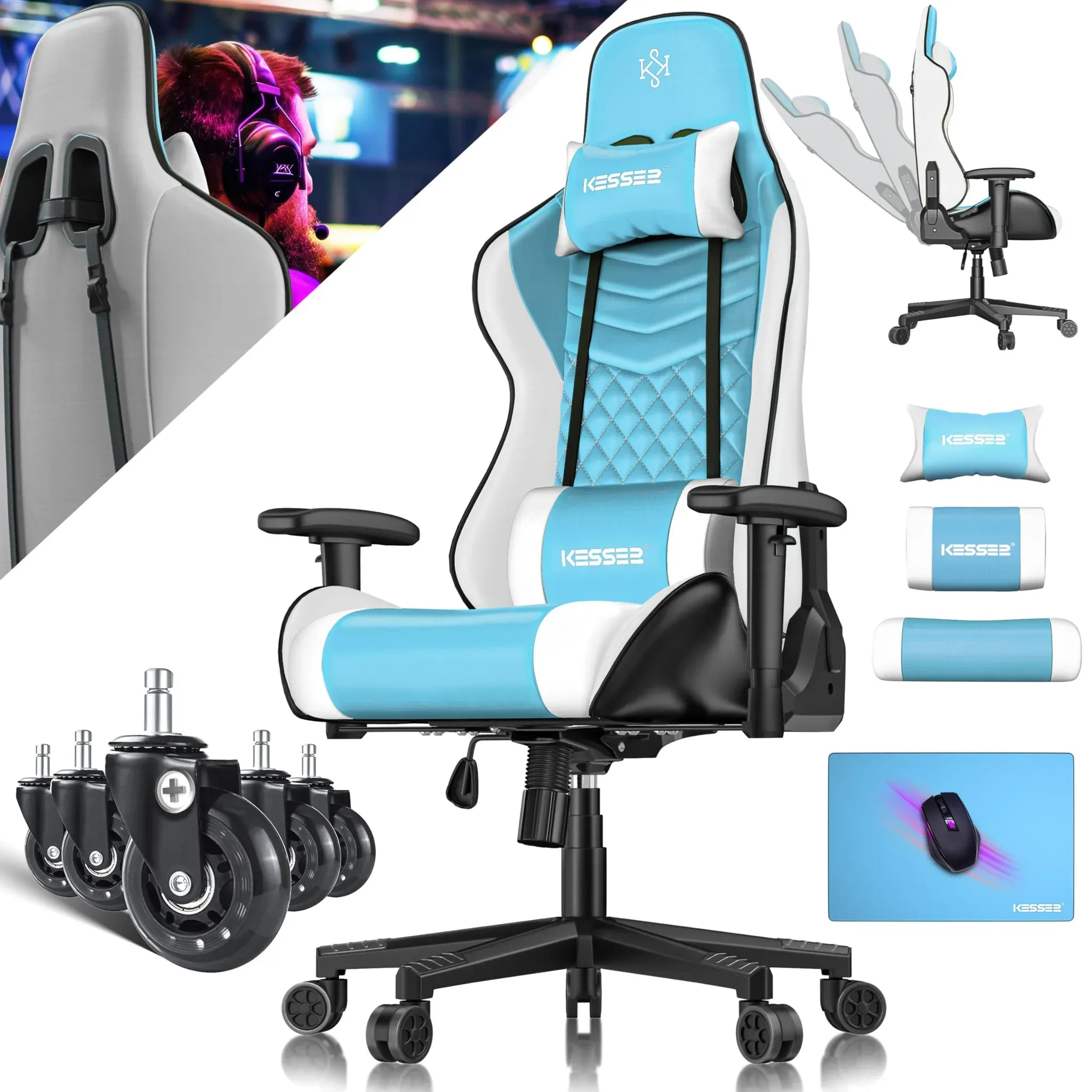 Verfügbarkeit: Auf Lager - Kategorie: Gaming-Zubehör - Kesser - GTIN:4255598339148 - ULTIMATIVE BELASTBARKEIT: Der Gamingstuhl KESSER bietet eine beeindruckende Belastbarkeit von bis zu 150 kg, ideal für intensives Gaming und lange Arbeitssitzungen. Mit einer soliden 24 kg Gewichtsklasse vereint dieser Stuhl Stabilität und Robustheit, um Ihnen das beste Spielerlebnis ohne Kompromisse in der Sicherheit und Haltbarkeit zu bieten. Perfekt für echte Sieger, die auf Komfort und Zuverlässigkeit setzen. VIELSEITIG VERSTELLBARE RüCKENLEHNE: Genießen Sie die Flexibilität einer Rückenlehne, die von 90° bis 150° verstellbar ist. Ob für den entspannten Gaming-Marathon, das gemütliche Anschauen von Filmen oder das konzentrierte Arbeiten - der KESSER Gamingstuhl passt sich Ihren Bedürfnissen an. Die Neigungssperrung sorgt dabei für zusätzliche Stabilität in Ihrer bevorzugten Position. ERGO-UNTERSTüTZUNG DER EXTRAKLASSE: Der KESSER Gamingstuhl ist mit einer umfassenden ergonomischen Unterstützung ausgestattet, darunter Nackstütze, Schulterstütze und Rückenstütze. Diese Eigenschaften sind speziell entwickelt, um Ihre Lendenwirbelsäule zu entlasten und eine gesunde Sitzhaltung zu fördern, sodass Sie stundenlang bequem sitzen können. 360° VERSTELLBARE ARMLEHNEN: Die Armlehnen des Gamingstuhls KESSER sind 360° drehbar und bieten Ihnen die Freiheit, Ihre Sitzposition nach Ihren Wünschen anzupassen. Dies fördert nicht nur den Komfort, sondern auch die ... Dieser ergonomische Gaming-Stuhl mit Fußstütze und Latex-Kissen bietet gehobenen Komfort und Unterstützung für längere Gaming-Sessions. ![]() Ergonomischer Gaming-Stuhl mit Fußstütze, Büromöbel, Schreibtischstuhl mit Latex-Kissen, Stuhl für E-Sport, Büro und Heimgebrauch