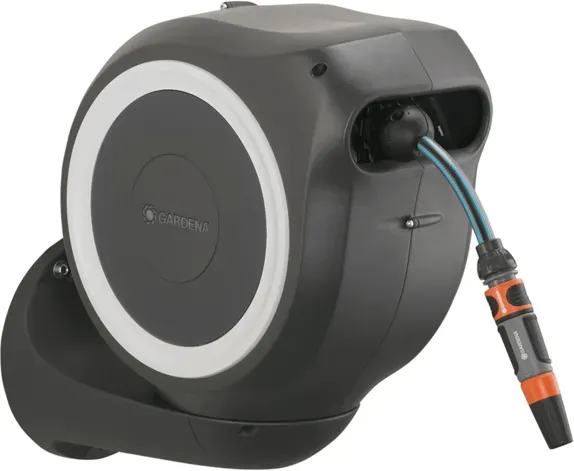 Kategorie: Bewässerung - Gardena - GTIN:4078500051965 - Mit der Gardena Garten-Schlauchbox RollUp S wird die Bewässerung des Gartens zu einem komfortablen Vergnügen. Höchste Standsicherheit Die praktische Garten-Schlauchbox ist auf einem erhöhten Standfuß montiert und kann an einem beliebigen Ort im Garten installiert werden. Der robuste Erdspieß wird mit Hilfe einer Montagestange einfach in den Boden gedreht, wodurch die Konstruktion äußerst stabil und standfest ist. Praktische Aufrolltechnologie Der hochwertige Gartenschlauch lässt sich für den Gebrauch auf maximal 15 m ausziehen. Dank des eingebauten kurzen Arretierstops ist eine mühelose Handhabung rt: Der Schlauch wird automatisch an der gewünschten Ausziehlänge fixiert. Die Schlauchtrommel und der Erdspieß lassen sich ganz einfach miteinander verbinden, sodass die Box um 360 gedreht werden kann, was zu viel Bewegungsfreiheit bei der Gartenarbeit führt. Durch die hohe Flexibilität kann jeder Winkel des Gartens problemlos ohne Knicken oder Verknoten des Schlauches erreicht werden. Mit einem kurzen Zug am Schlauch wird die Arretierung gelöst und eine Feder zieht diesen vollautomatisch und zuverlässig wieder ein. Die spezielle RollControl-Technologie sorgt dabei für einen sicheren und kontrollierten Einzug des Gartenschlauchs. UV- und frostsicher Die Box ist aus hochwertigen Materialien gefertigt und verfügt über einen UV- sowie einen Frostschutz. So ist ein ganzjähriger und langlebiger Einsatz der Box rt. Sofort ... Coolblue bietet die weiße Wand-Schlauchbox für 110.90 Euro an, eine solide Wahl mit guter Verfügbarkeit. ![]() ![]() Gardena Wand-Schlauchbox 15 RollUp S Weiß