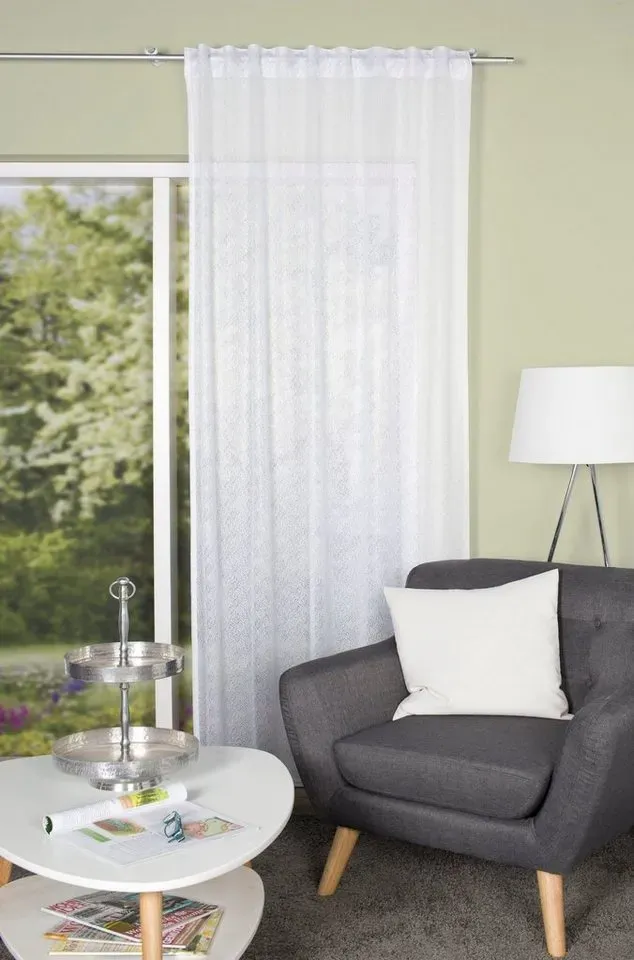Kategorie: Gardinen - GTIN:4056751479295 - ca. 140 x 245 cm (B x L) große Fertigvorhang in Weiß (halbtransparent) macht an Ihrem Fenster eine gute Figur. Dank der Gestaltung in einem hellen Kolorit, kombiniert zum floralen Motiv, kreiert der Vorhang ein Flair, das zu verschiedenen Interiors harmoniert. Je nach Belieben lässt sich die Wohnidee unter Zuhilfenahme des Multifunktionsbands beziehungsweise des Kombibands mühelos am Fenster anbringen. Mit Robustheit und Strapazierfähigkeit punkten die feuchtigkeitsbeständigen Synthetikfasern genauso wie mit ihrer vorteilhaften Erscheinung. Halbtransparent gefertigt erlaubt die durchscheinende Beschaffenheit, das Sonnenlicht ein klein wenig zu dämpfen für eine lauschige Stimmung im Zimmer. Im übrigen lässt sich das Textil einfach reinigen: Maschinenwaschbar bis ca. 30 C ist es rasch aufgefrischt. Für ein rundum tolles Zuhause stellt dieser Fertigvorhang in Weiß (halbtransparent) das richtige i-Tüpfelchen dar! Weitere Details: für Stange und Schiene geeignet mit Kombiband - 21,59 Euro bei XXXLutz.de - gefunden von billiger.de ![]() ![]() Vorhang HOME WOHNIDEEN "PILAGO" Gr. 1, weiß, B:140cm H:245cm, Wirkware, Polyester, Gardinen, Kombibandschal PILAGO mit Raschelspitze