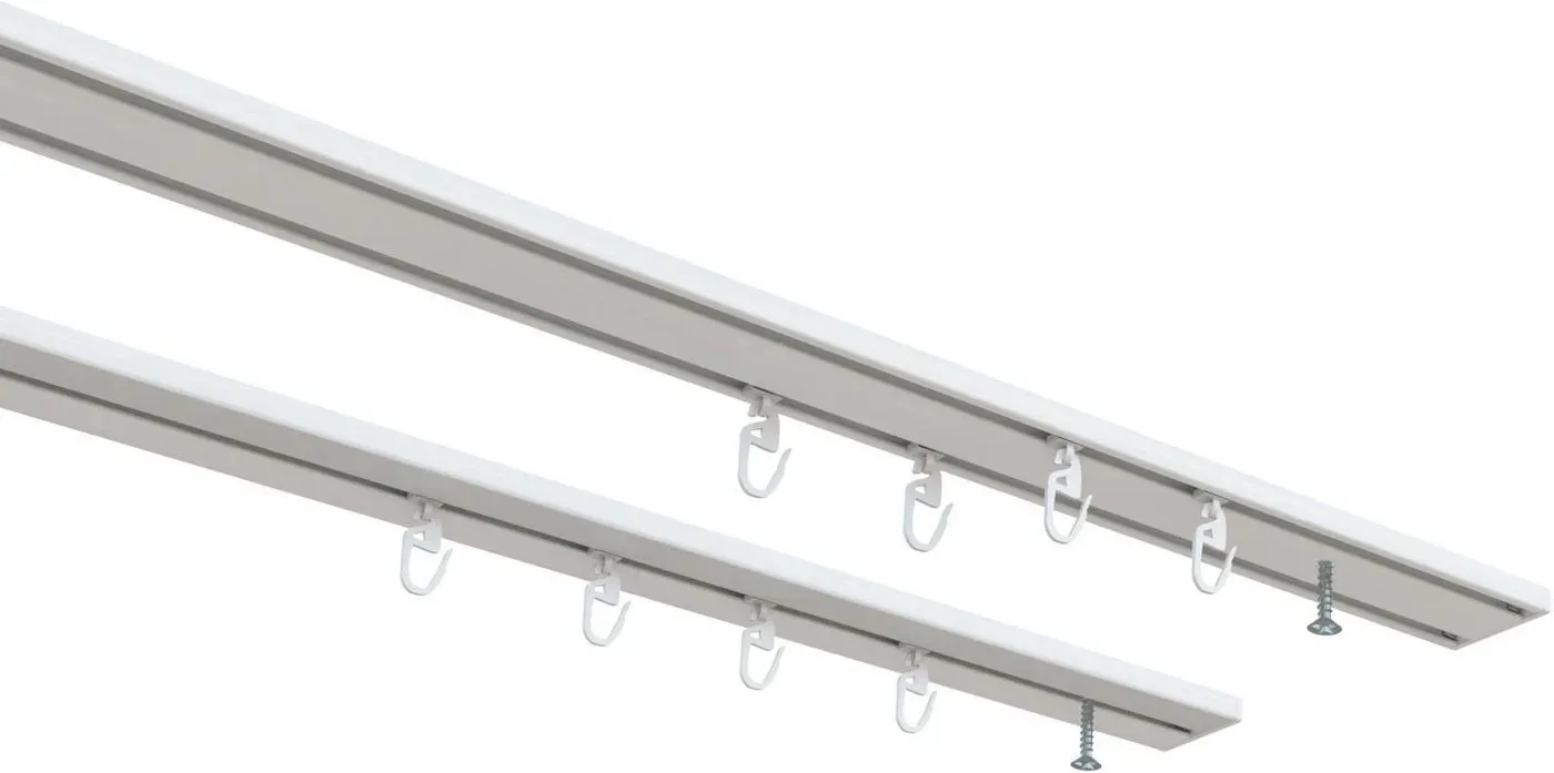 lieferbar-in 7-9 Werktagen bei dirmy home Gardinenschiene Tanbul, 2-läufig, Fixmaß, mit Bohren, verschraubt, Aluminium weiß 100 cm x 4,2 cm