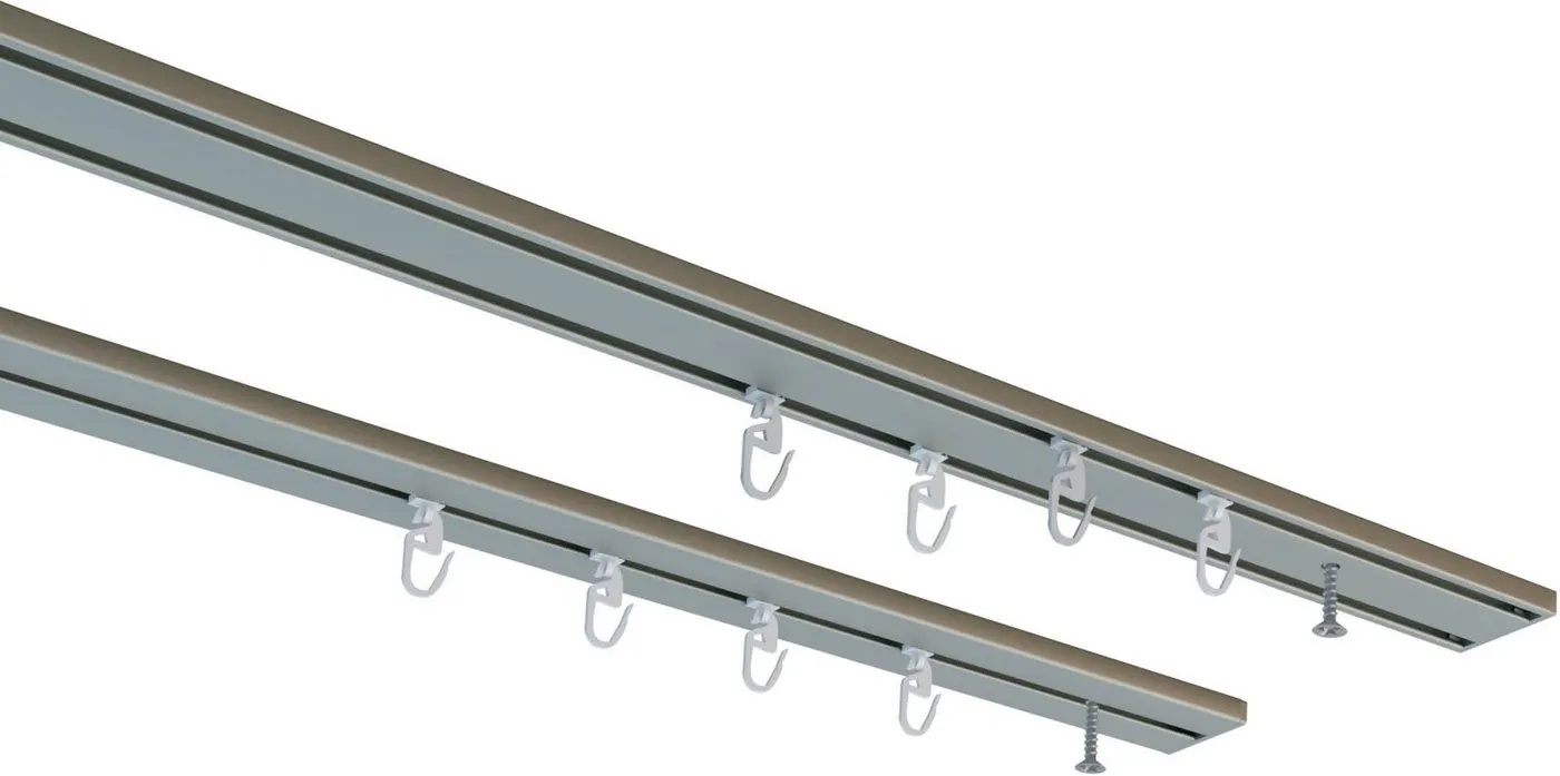 lieferbar-in 6-7 Werktagen bei dirmy home Gardinenschiene Tanbul, 2-läufig, Fixmaß, mit Bohren, verschraubt, Aluminium silberfarben 240 cm x 5,6 cm