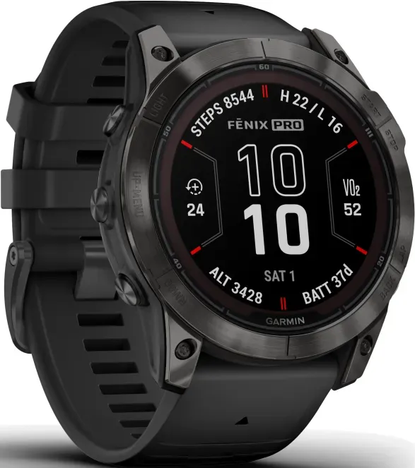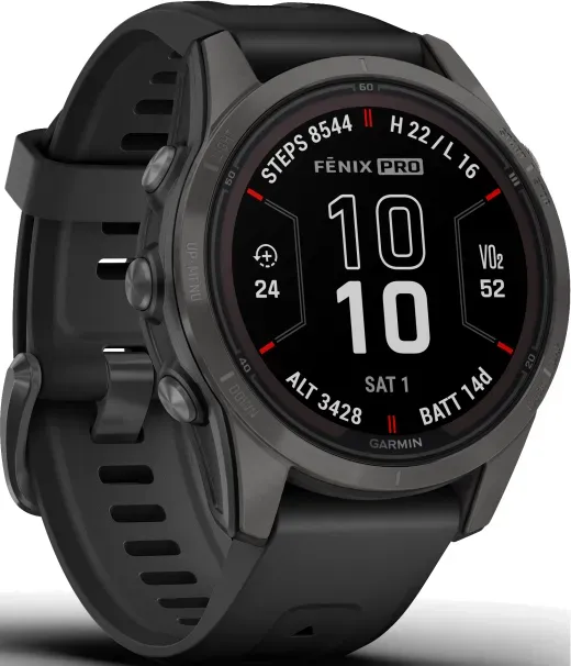 5 Händlerangebote bei billiger.de - Kategorie: Smartwatches - Garmin - Erobern Sie jede Stunde mit fortschrittlichen Trainingsfunktionen, 24/7-Gesundheits- und Wellness-überwachung und bis zu mehr als einem Monat Akkulaufzeit mit der Power Sapphire-Solarladelinse1 und einem robusten, für kleinere Handgelenke konzipierten Uhrengehäuse. Bis zu 14 Tage im Smartwatch-Modus mit Solaraufladung bei 3 Stunden direkter Sonneneinstrahlung (50.000 Lux) pro Tag und bis zu 46 Stunden im GPS-Modus mit Solaraufladung (bei ununterbrochener Nutzung über den gesamten Zeitraum bei 50.000 Lux). Das robuste, sportliche Design bietet ein kratzfestes 1,2-Zoll-Display mit Saphirglas und Solarladung, einen reaktionsschnellen Touchscreen, traditionelle Tasten und ein 42-mm-Gehäuse aus faserverstärktem Polymer mit einer Lünette aus Stahl oder Titan und einer hinteren Abdeckung. Die Uhr wurde gemäss den US-Militärstandards auf Wärme-, Stoss- und Wasserbeständigkeit getestet. - GTIN:0753759317614 Eine solide Wahl für die Standardgröße der Fenix 7 Pro in Schwarz/Carbongrau. ![]() ![]() Garmin fenix 7 Pro Sapphire Solar schwarz/carbongrau