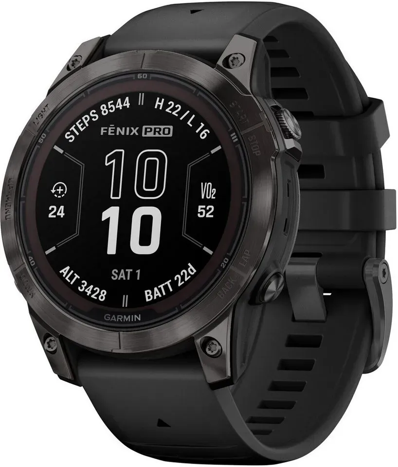 Kategorie: Smartwatches - Garmin - GTIN:0753759317850 - Garmin fenix 7 PRO fenix 7X PRO - Sapphire Solar Edition Schwarz/Carbongrau Titan mit QuickFit -Silikon-Armband 26 mm' mit digital-touchscreen-variabelfarbigem Zifferblatt und schwarzfarbigem original Garmin Armband aus QUICKFIT-Silikon-Armband 26mm in schwarz' - 745,80 Euro bei uhrenlounge.de - gefunden von billiger.de Für Nutzer, die eine größere Uhr in klassischem Schwarz/Carbongrau suchen, ist dieses Modell eine solide Wahl. ![]() ![]() Garmin fenix 7X Pro Sapphire Solar schwarz/carbongrau