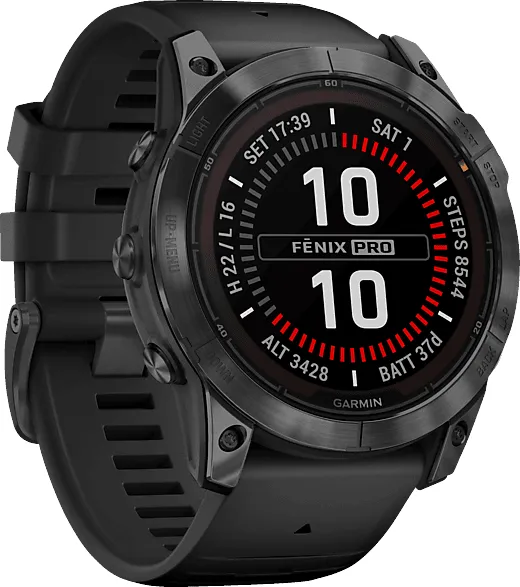 Kategorie: Smartwatches - Garmin - GTIN:0753759317850 - GARMIN Fenix 7X PRO Sapphire Solar Edition | Schwarz/Carbongrau Titan DLC Das Beste. Ohne Kompromisse. Die Fenix 7 Pro kommt in drei Größen, mit LED-Taschenlampe sowie umfangreichen Trainings- und Gesundheitsfunktionen - für Deine beste Performance. Das Power Saphir Glass mit Solar-Ladelinse sorgt für extra Ausdauer - bis zu 37 Tage im Smartwatch-Modus und maximal 122 Std. im GPS-Modus. Ermittle aus Trainingsbelastung, Erholung, Schlaf und weiteren Gesundheitsdaten Deine individuelle Trainingsbereitschaft. Mit dem neuen Hill Score und Ausdauerwert kannst Du Deine Entwicklung im Bergauflaufen und Deine Ausdauerfähigkeit verfolgen. Steigere Dich mit über 80 Apps bei jeder Sport- und Outdoor-Aktivität und navigiere dank vorinstallierten, internationalen Karten in jedem Winkel der Erde zuverlässig ans Ziel. Zusammen mit smarten Funktionen wie Garmin Pay, Garmin Music und Co wird die Fenix 7 zur vielleicht komplettesten Multisport-Smartwatch ihrer Zeit. PERFORMANCE BY DESIGN Sportlich designt, begleitet sie Dich bei jeder Aktivität. üBERRAGENDE AKKULAUFZEIT Das Power Sapphire Glas mit Solar-Ladelinse liefert überragende Akkulaufzeiten. Bis zu 37 Tage im Smartwatch- und 122 Std. im GPS-Modus können über den Power Manager zusätzlich verlängert werden. TASCHENLAMPEN-FUNKTION Die integrierte LED-Taschenlampe bietet eine schnelle Aktivierung und gute Ausleuchtung bei Dunkelheit. MULTI-FREQUENZ & SATIQ TECHNOLOGIE Hochpräzise ... Dieses Angebot ist empfehlenswert, da es die Garmin Unisex Fenix 7X Pro - Saphire Solar Edition - 51mm schwarz von einem Sportfachhändler anbietet. ![]() ![]() Garmin Unisex Fenix 7X Pro - Saphire Solar Edition - 51mm schwarz