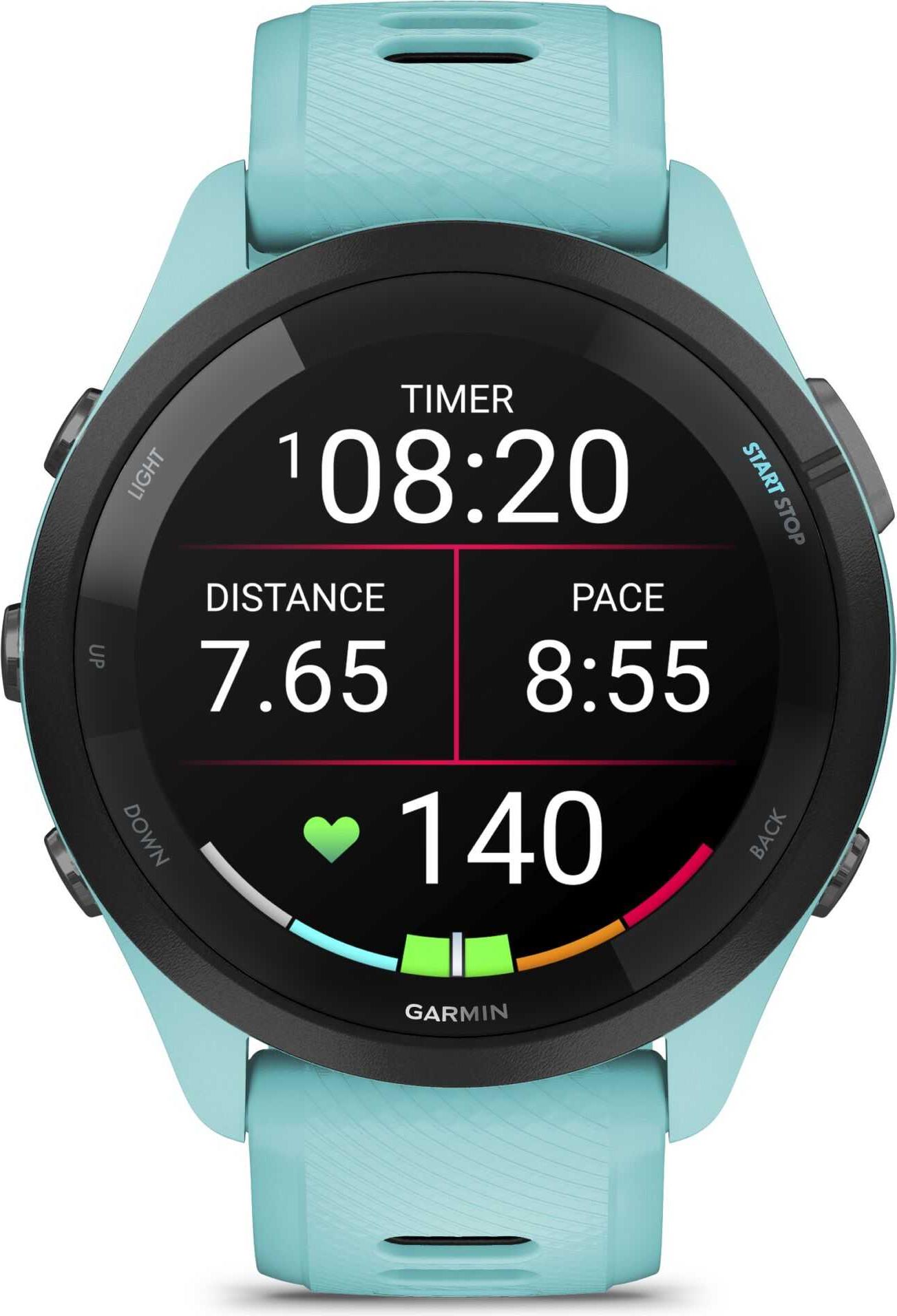 EAN: 0753759313739 - Produktbeschreibung: Garmin Forerunner 265 - Aqua - intelligente Uhr mit Riemen - Aqua/Black - 8 GB, Produkttyp: Intelligente Uhr, Aktivität/Sport: Multisport, Verfolgungsdaten: Strecke, Zeit, Geschwindigkeit, verbrannte Kalorien, Aktivität, Schlafverhalten, Herzfrequenz, Schritte, bewältigte Stockwerke, Höhe, Sauerstoffsättigung des Blutes, Geschwindigkeit, Stressniveau, Atemfrequenz, Menstruationszyklus, Steigung, Schwimm-Metriken, Flüssigkeitszufuhr, Erholungszeit, Trainingsbelastung, Trainingseffekt, Schlafqualitätsindex, Trainingsintensität, Schrittlänge, Konnektivität: Bluetooth, Wi-Fi, ANT+, Navigation: GPS/GLONASS/Galileo-Empfänger, Anzeige: AMOLED - 3,25 cm (1.3') - 416 x 416 Pixel - Corning-Gorillaglas 3, Speicherkapazität: 8 GB, Gehäuse: Rund - 46 mm, Band: Aqua/Black - Riemen - Silikon - austauschbar, Zahlungstechnologie: Garmin Pay, Eingang: Touch-Screen, Drucktaster, Passend für Handgelenke mit Umfang: 135-205 mm, Benachrichtigungen: Verpasste Anrufe, Kalender, SMS, E-Mail, Social-Apps, eingehende Anrufe, hohe und niedrige Herzfrequenz, Merkmale: HRmax, Kamerafernbedienung, Telefonsuchfunktion, VO2 max, überwachung der Herzfrequenzvariabilität (HRV), HR-Zonen, VIRB-Kontrolle, Move IQ, Garmin Connect kompatibel, Datum, Geräteortung, herunterladbare Workouts, Musik speichern & abspielen, Garmin Elevate, Sonnenaufgangs- und Sonnenuntergangszeiten, LiveTrack, TrueUp, Auto Pause, Auto Lap, Physio TrueUp, TracBack, UltraTrac, Steuerung der ... ![]() ![]()