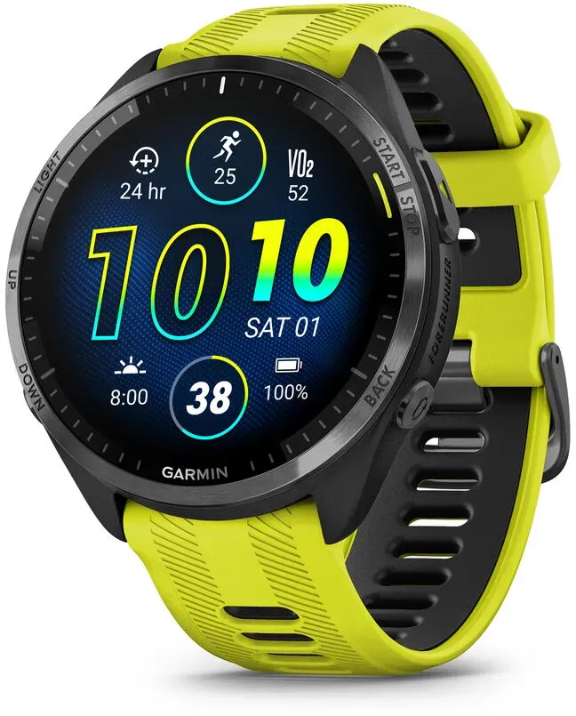 EAN: 0753759313869 - Train brilliantly mit der Garmin Forerunner 965 Serie mit AMOLED Display. DU GEHST GERNE AN DEINE GRENZEN UND WILLST AUS JEDEM TRAINING UND WETTKAMPF DAS MAXIMUM HERAUSHOLEN? DIE Garmin Forerunner 965 SERIE UNTERSTüTZT DICH BEI DEINEN AMBITIONIERTEN ZIELEN. DANK DES HELLEN AMOLED TOUCHDISPLAYS UND INNOVATIVEN TRAININGSFUNKTIONEN BEHäLTST DU DEINE LEISTUNGS- UND GESUNDHEITSDATEN FEST IM BLICK. HIGHLIGHTS zur Garmin Forerunner 965 mit AMOLED Display: HOCHWERTIGE MATERIALIEN - UNGLAUBLICH LEICHT DANK TITANIUM-LüNETTE LäNGER DURCHHALTEN - MIT BIS ZU 23 TAGEN AKKULAUFZEIT IM SMARTWATCH-MODUS WETTKAMPF KALENDER TäGLICHE TRAININGSEMPFEHLUNGEN LAUFEFFIZIENZDATEN HOCHPRäZISE AUFZEICHNUNG - MIT INTEGRIERTEN KARTEN UND MULTI-FREQUENZ EMPFANG 1,4 ZOLL AMOLED FARBDISPLAY BIS ZU 31 STUNDEN AKKULAUFZEIT IM GPS-MODUS PHYSIOLOGISCHE MESSWERTE UND ERHOLUNGSINFOS INTEGRIERTE KARTEN MIT SATIQ UND MULTI-FREQUENZ EMPFANG UNGLAUBLICH LEICHT DANK TITANIUM-LüNETTE TOUCHDISPLAY UND TASTEN Lieferumfang: Forerunner 965 Lade-/Datenkabel Dokumentation Farbe: Schwarz/Carbongrau DLC Titan mit Silikon-Wechselarmband 22 mm Schwarz/Hellgrau - bei lauf-bar.de - aus Yadore Produktdaten Die gelbe Variante der Garmin Forerunner 965 Multifunktionsuhr ist ebenfalls bei Sportler.com zu finden und bietet eine frische Alternative. ![]() ![]() Garmin Forerunner 965 - Multifunktionsuhr - Yellow