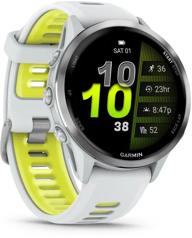 Verfügbarkeit: auf Lager-Lieferzeit 1-2 Tage - Kategorie: Smartwatches - Garmin - GTIN:0753759349929 - GARMIN Forerunner 970 | GPS Lauf- und Triathlon Smartwatch | 47 mm | Schwarz / Carbongrau Für maximale Performance und klare Ziele: Garmin Forerunner 970. Diese trainingsorientierte Smartwatch wurde speziell für ambitionierte Läufer und Triathleten entwickelt. Sie überzeugt mit einer leichtgewichtigen Bauweise sowie innovativen Funktionen für einen effizienten Leistungsaufbau vor Deinem nächsten Wettkampf. Gefertigt aus faserverstärktem Polymer, kratzfestem Saphirglas und Elementen aus Titan, bietet das leichte Gehäuse maximalen Tragekomfort. Das 1,4-Zoll große AMOLED-Touchdisplay setzt neue Maßstäbe in Sachen Ablesbarkeit und Handhabung. Besonders im Außeneinsatz spielt das brillante Display seine Stärken aus: Selbst bei direkter Sonneneinstrahlung bleibt es klar und kontrastreich, sodass alle wichtigen Informationen jederzeit erkennbar sind. Die optimierte Benutzeroberfläche sorgt zudem für eine intuitive Steuerung, wahlweise per Touch oder über die soliden Tasten am Gerät. Dank des Multi-Frequenz-Empfangs globaler Satellitensysteme liefert die Uhr eine hochpräzise Streckenaufzeichnung, unterstützt durch Garmins intelligentes Satellitensignal-Management-System SatIQ, das automatisch zwischen verschiedenen Satellitenkonstellationen wechselt, um sicherzustellen, dass Dein Gerät die bestmögliche Genauigkeit und eine konstante Verbindung erhält. Garmin ... Diese weiße GPS-Sportuhr ist eine gute Option für alle, die eine hellere Farbvariante bevorzugen und einen fairen Preis suchen. ![]() ![]() Garmin Forerunner 970 GPS-Sportuhr-Weiss-One Size