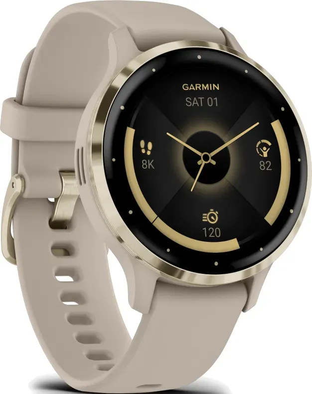 Artikel auf Lager, Lieferzeit 1 bis 3 WerktageGarmin VENU 3 VENU 3S French Gray/Softgold mit Schnellwechsel-Silikon-Armband" 010-02785-02" - AMOLED Farb-Touchdisplay,French Gray/Softgold - 41mm