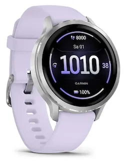 Sofort lieferbar, Lieferzeit max. 1-3 WerktageGarmin Venu 4 - 41 mm Grau/Silber mit Schnellwechsel-Silikon-Armband 18 mm Lavendelblau