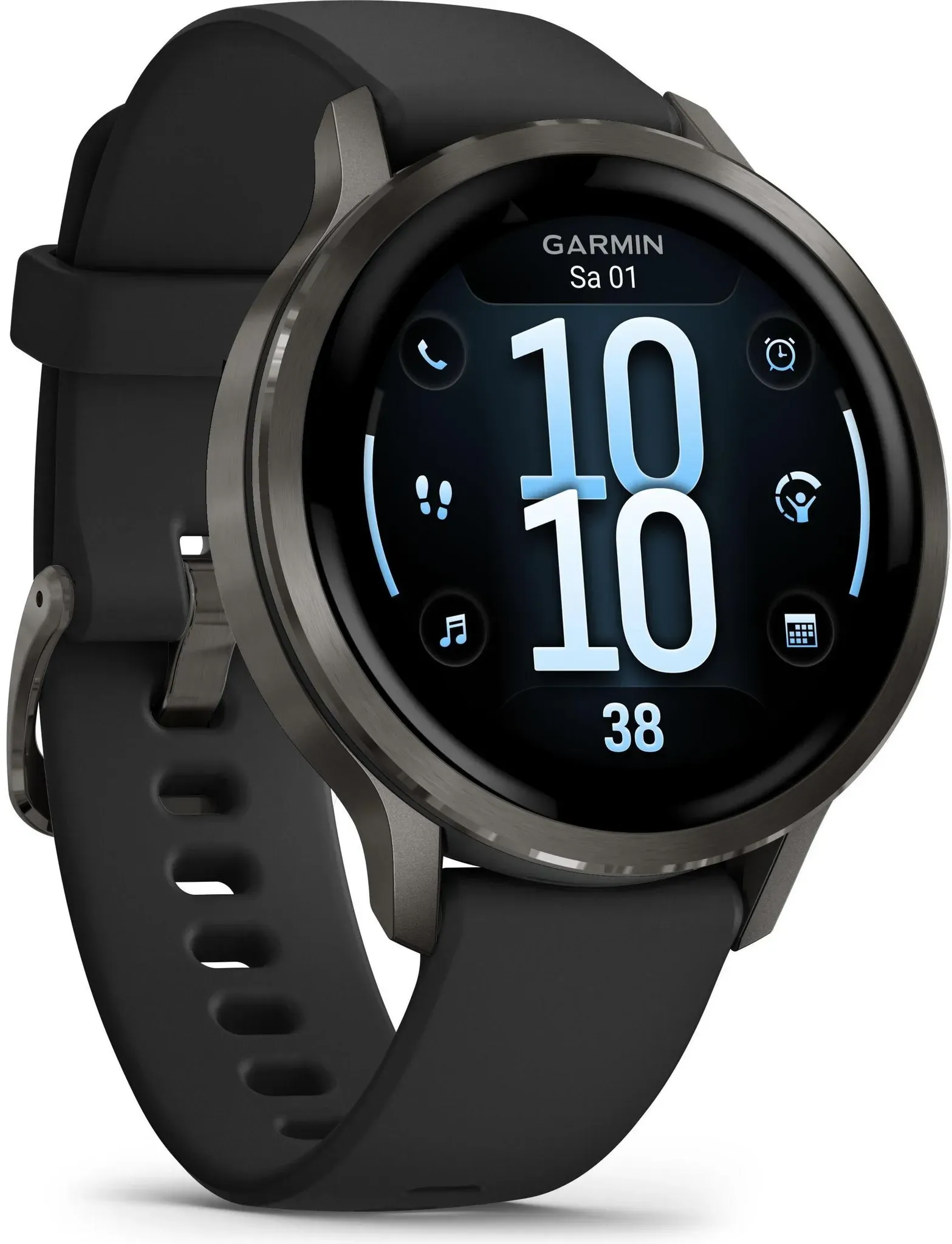 Sofort lieferbar, Lieferzeit max. 1-3 WerktageGarmin Venu 4 - 41 mm Schwarz/Schiefergrau mit Schnellwechsel-Silikon-Armband 18 mm