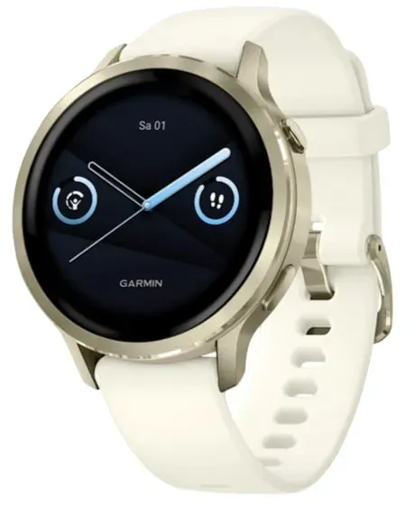Sofort lieferbar, Lieferzeit max. 1-3 WerktageGarmin Venu 4 - 41 mm Beige/Lunargold mit Schnellwechsel-Silikon-Armband 18 mm Bone