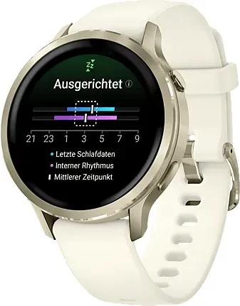 Verfügbarkeit: auf Lager - Kategorie: Smartwatches - Garmin - GTIN:0753759342845 - Mit der stylischen Venu®4 GPS-Smartwatch macht es einfach Spaß, jeden Tag etwas gesünder zu leben. Das brillante AMOLED Display im stilvollen Edelstahl-Gehäuse zeigt dir, was in deinem Körper passiert: von der Herzfrequenz über das Stresslevel bis zu deinen Energiereserven. Der intelligente Garmin Coach wird dich begeistern €“mit täglichen Trainingsempfehlungen auf Basis deiner Aktivitäts-, Erholungs- und Schlafdaten. Die verbesserte Schlafanalyse hilft dir, deine Schlafenszeit an deinen Biorhythmus anzugleichen. Der Health Status achtet auf Veränderungen deiner üblichen Gesundheitsdaten. Abweichungen könnten z.B. auf zusätzlichen Stress hindeuten. Du möchtest ein wenig Abwechslung? Animierte Workouts und 80+ Sport-Apps bringen dich an deine sportlichen Ziele €“auch für Rollstuhlfahrende. Erfasse deine Lebensgewohnheiten €“ vom Kaffeegenuss bis zur Bettlektüre €“ und erhalte in der Garmin ConnectApp einen überblick, wie sich deine Lebensweise auf deine allgemeine Gesundheit auswirkt. So hilft dir deine Smartwatch dabei, bewusstere Entscheidungen treffen zu können. Unterwegs hast du alle Freiheiten, um übers Handgelenk zu telefonieren, zu chatten oder zu bezahlen. Dank einer überragenden Akkulaufzeit von bis zu 12 Tagen behältst du mit der Venu®4 deine Fitness- und Gesundheitsdaten über Wochen hinweg zuverlässig im Blick. - 499,99 Euro bei Media Markt Online ... Dieses Angebot von billiger.de ist die einzige Option mit einem Lederarmband (Beige/Lunargold mit Sand-Lederarmband), was eine edlere Optik bietet. ![]() ![]() Garmin Venu 4 41 mm Beige/Lunargold Leder Armband Sand