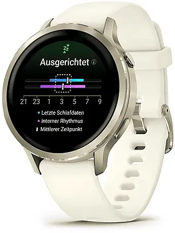 Zustand: Neu - Smartwatches - Garmin - 010-03014-01 - EAN: 0753759342883 - IHR STYLE: Elegante 41/45mm Fitness-Smartwatch mit AMOLED Display, änderbaren Displayfarben, hochwertigem Edelstahl-Gehäuse sowie 18/22 mm Silikon-Armbändern für höchsten Tragekomfort. Mit überragender Akkulaufzeit von bis zu 12 Tagen im Smartwatch-Modus. IHR COACH: Der virtuelle Garmin Coach gibt Ihnen tägliche Trainingsempfehlungen - auf Basis Ihrer Aktivitäts-, Erholungs- und Schlafdaten. Dazu dynamische Trainingspläne fürs Laufen und Radfahren, animierte Übungen für Krafttraining, Cardio, Yoga u.v.m. IHRE GESUNDHEIT: Der innovative Health Status achtet auf Veränderungen Ihrer üblichen Gesundheitsdaten. Die Schlafanalyse hilft Ihnen, Ihre Schlafenszeit an Ihren Biorhythmus anzugleichen. Sogar Ihre Lebensgewohnheiten können Sie gesundheitlich auswerten. IHRE FITNESS: Behalten Sie Ihren Körper im Blick und verbessern Sie Ihre Fitness. Ihre Garmin bietet Ihnen hierfür innovative Funktionen wie Erholungs-Ratgeber, VO2max, Schritte/Schübe, Intensitätsminuten, Kalorien, Stockwerke, Inaktivitätsalarm u.v.m. IHR SPORT: Über 80 Sport- und Outdoor-Apps bringen Sie an Ihre sportlichen Ziele - inklusive Wandern, Radfahren, Laufen, Golf und mehr. Auch gemischte Trainings werden erfasst. Mit Funktionen auch für Rollstuhlfahrende. Tauchtauglichkeit bis 50 m Tiefe. EINFACH SMART: Tätigen und empfangen Sie Anrufe über Ihre Smartwatch. Versenden Sie Nachrichten mit der Sprachassistenz. Genießen Sie mit Garmin Music ... Die Garmin Venu 4 (41 mm) in Beige/Lunargold von billiger.de ist eine der günstigsten Optionen für die 41mm-Variante. ![]() ![]() Garmin Venu 4 41 mm Beige/Lunargold Silikon Armband Bone