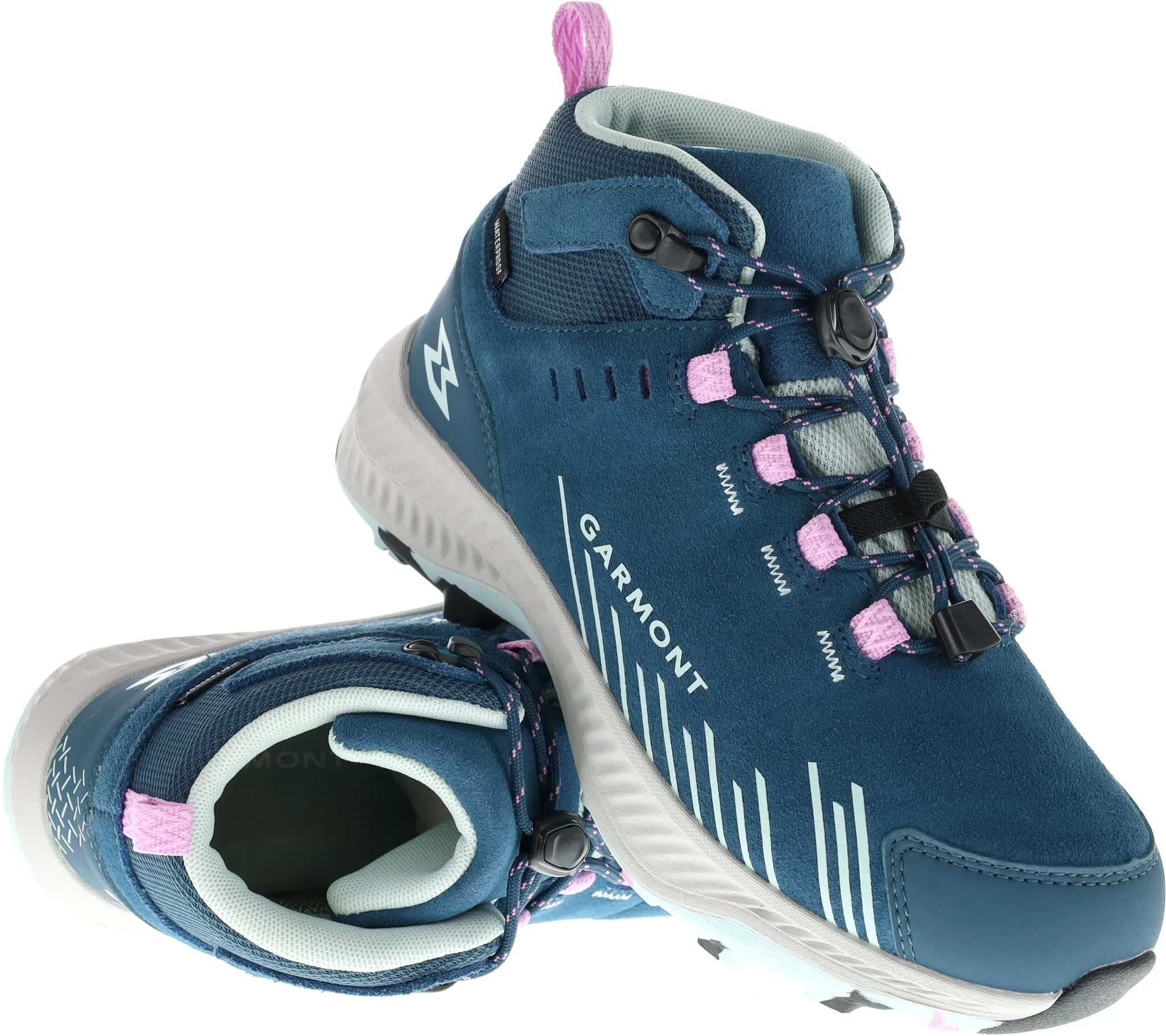 2 Händlerangebote bei billiger.de - Kategorie: Wanderschuhe - Garmont - Entdecken Sie den 9.81 Kids Pulse Mid WP von Garmont, den idealen Begleiter für abenteuerlustige Kinder, die gerne mit der Familie die Natur erkunden. Dieser sportliche und dynamische Stiefel bietet hervorragenden Komfort, zuverlässigen Grip und optimalen Schutz, selbst auf herausfordernden Untergründen. Der Schaft besteht aus hochwertigem 3D-Polyester-Mesh und ist mit Mikrofaser und einer PU-Verkleidung verstärkt, was für erhöhte Stabilität und Langlebigkeit sorgt. Dank der wasserdichten G-Dry-Membran bleibt der Fuß auch bei nassen Bedingungen angenehm trocken. Das Garmont PU-Schaum-Fußbett sorgt für eine optimale Dämpfung und ein komfortables Tragegefühl, während die speziell für Kinder entwickelte GARMONT GTF KIDS MAGNET-Sohle sicheren Halt auf allen Abenteuern bietet. Ob beim Wandern, Spielen oder Entdecken €“ dieser Stiefel ist darauf ausgelegt, den kleinen Entdeckern maximalen Spaß und Sicherheit zu bieten. Produktdetails Konstruktion: Mid Cut Schaft: 3D-Polyester-Mesh + Besatz aus Mikrofaser mit Verkleidung aus PU + Verstärkungen aus Textilgewebe Futter: Wasserdichte G-Dry-Membran Fußbett: Garmont PU-Schaum Sohle: GARMONT GTF KIDS MAGNET - GTIN:8056586233877 Dieser Kinder-Wanderschuh in Blau und Größe 33 ist ein sehr günstiges Angebot für die jüngsten Abenteurer. ![]() ![]() Garmont 9.81 Pulse Trek WP Kinder Wanderschuhe-Blau-33