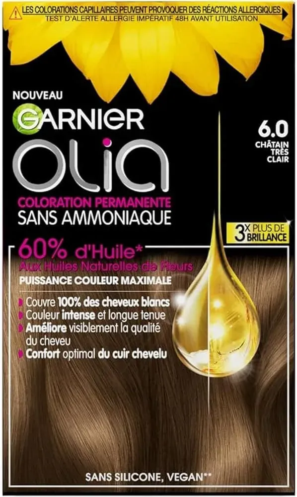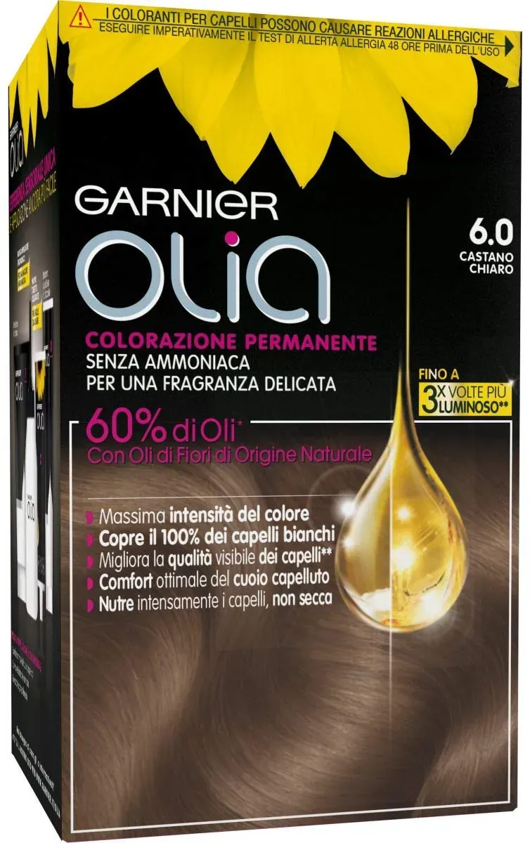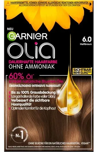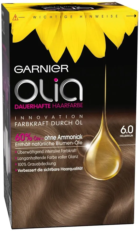 Kategorie: Shampoo - Garnier - GTIN:3600541232976 - Permanente Haarfarbe mit natürlichen Blütenölen für ein sehr helles und langanhaltendes Kastanienbraun, sichtbar verbesserte Haarqualität und optimaler Kopfhautkomfort Ergebnisse: Für leichtes, gepflegtes und vor dem Austrocknen geschütztes Haar, 100 % Abdeckung von weißem Haar, Vielzahl von Reflexen, intensive und gleichmäßige Farbe Anwendungshinweise: 48 Stunden vor der Anwendung einen Allergietest durchführen. Lesen Sie die Anleitung vor der Anwendung sorgfältig durch. Empfohlene Menge: 1 Packung (mittellanges Haar), 2 Packungen (langes Haar) Samtige Creme ohne Verlaufen und ohne Ammoniak formuliert für einen leichten blumigen Duft, der sich angenehm bei der Anwendung anfühlt. O.D.S-Technologie aus 60 % öl, um die Farbe ins Herz des Haares zu bringen Inhalt: 1 x Garnier Olia Permanente Haarfarbe, sehr helles Braun (6.0), inkl. Handschuhe, Wärmflasche, Entwicklermilch, Farbcreme, Pflege und Gebrauchsanleitung - 9,48 Euro bei Amazon Marketplace Beauty - gefunden von billiger.de Dress- for- less.de