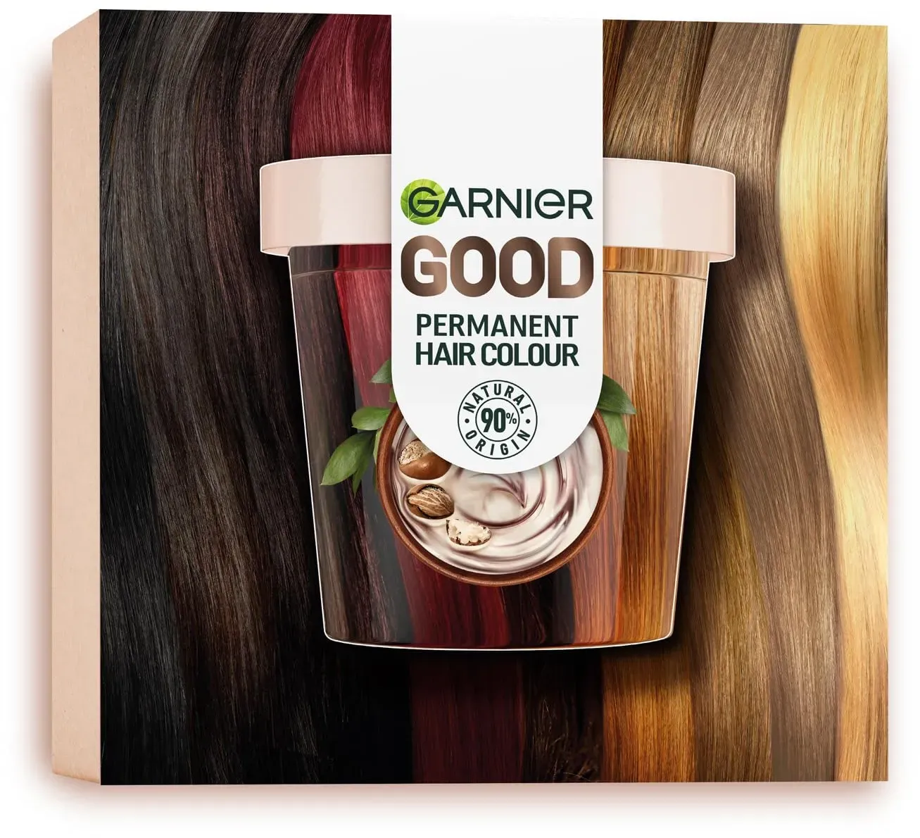 2 Händlerangebote bei billiger.de - Kategorie: Coloration - Garnier - Die Garnier GOOD Dauerhafte Haarfarbe bietet bis zu 100% Grauabdeckung und bis zu acht Wochen langanhaltende Farbe Vegane Formel ohne Ammoniak mit 90% Inhaltsstoffen natürlichen Ursprungs und Wasser Eine natürlich aussehende Haarfarbe für schöne Effekte und Farbschattierungen mit einem angenehmen Duft nach Gojibeeren, Orchideen und Sandelholz Haare selber färben leicht gemacht: Dank der nicht tropfenden Textur lässt sich die Formel einfach mit den Händen entnehmen und auftragen Die Haarcoloration enthält zudem eine pflegende Kur mit Sheabutter ohne Silikone für ein natürliches Haargefühl - GTIN:3600542519014 ![]() ![]() GARNIER GOOD Haarfarbe 6.0 Mokka Braun