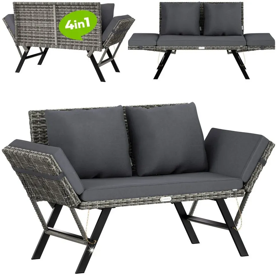 4 Händlerangebote bei billiger.de - Kategorie: Gartenbänke - CASARIA - Produktdetails Einsatzbereich , Garten, Ausstattung & Funktionen Ausstattung , 1x Gartensofa inkl. Auflage und 2 Kissen, Funktionen , 2-in-1 Sonnenliege, Maßangaben Breite , 56 cm, Tiefe , 176 cm, Höhe , 81 cm, Hinweis Maßangaben , 176 x 56 x 81 cm, Material Materialzusammensetzung , Stahl / Kunststoff, Material , Stahl / Kunststoff, Farbe Farbe , Schwarz, Allgemein Ausführung , Gartenbank, Lieferung & Montage Lieferumfang , 1x Gartensofa inkl. Auflage und 2 Kissen, - GTIN:4251779129874 Diese CASARIA Gartenbank mit Liegefunktion ist mit 138.95 Euro ein vielseitiges Möbelstück, das Komfort und Funktionalität vereint. ![]() ![]() CASARIA Gartenbank 3-Sitzer mit Liegefunktion 200 x 80 x 70 cm Grau