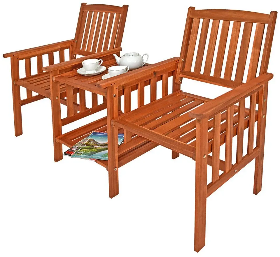 lieferbar-in 2-3 Werktagen bei dirCasaria Bank Tete a Tete, Gartenbank 2-Sitzer Akazienholz inkl. Tisch & Ablage outdoor indoor