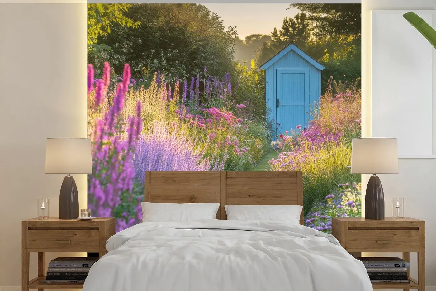 ![]() ![]() MuchoWow Fototapete Gartenhaus - Blau - Blumen, Matt, bedruckt, Vinyl Tapete für Wohnzimmer oder Schlafzimmer, Wandtapete, 350x350 cm 3.5 m x 4 m