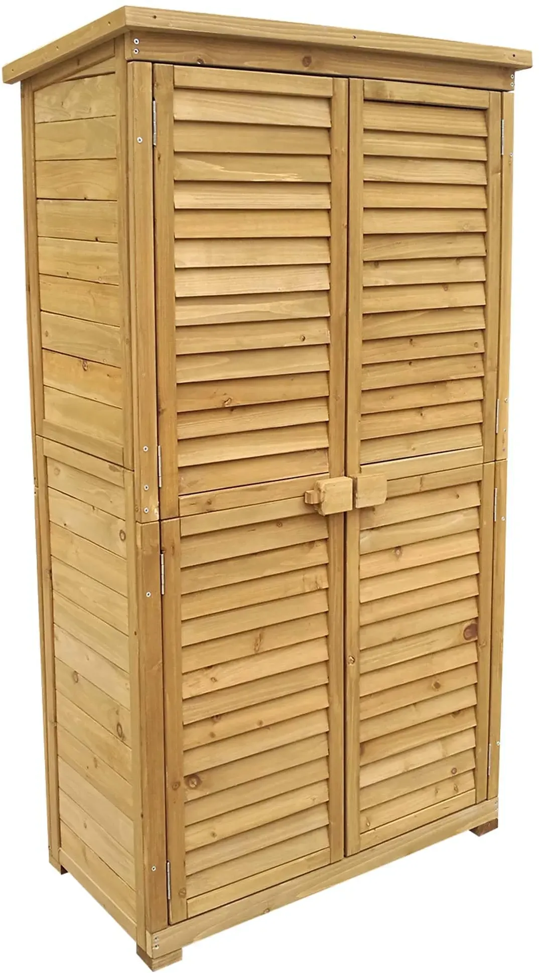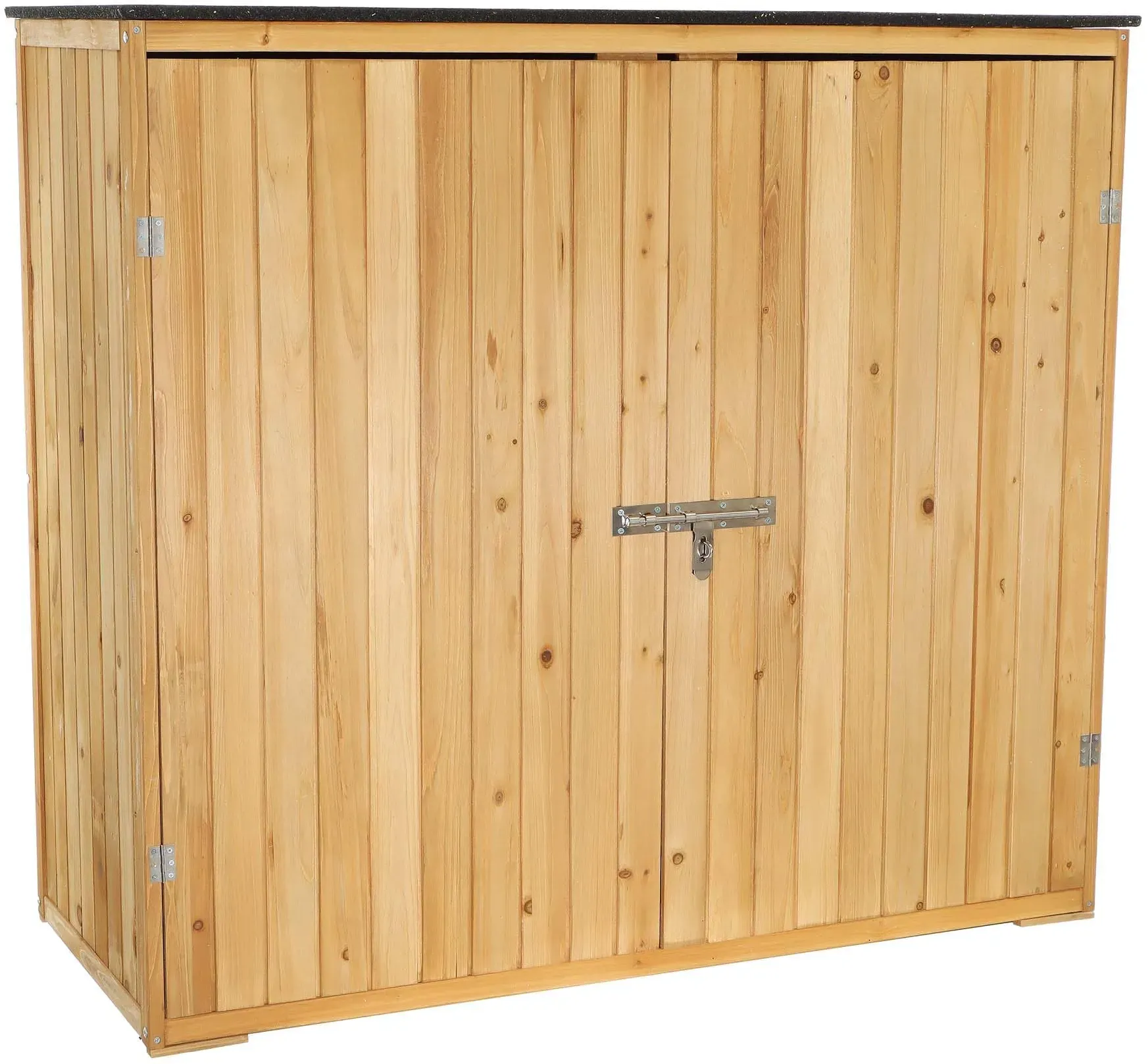 Kategorie: Gartenhäuser - Wiltec - GTIN:4250390874354 - [Optimale Platznutzung für Ordnung] - Mit 3 Fächern, 2 Türen und Abmessungen von 870x465x1600 mm bietet dieses Gartenhaus einen durchdachten Stauraum für Werkzeuge und Geräte. [Zuverlässiger Witterungsschutz] - Das Dach mit Bitumen Eindichtung gewährleistet, dass Ihr Garteninventar vor Regen und anderen Witterungseinflüssen geschützt ist. [Vielseitig] - Perfekt geeignet für Garten, Terrasse und Balkon, als Gartenschrank, Werkzeugschuppen oder Gerätehaus. Der Schrank hat 2 Lamellentüren. [Hochwertiges Fichtenholz für Langlebigkeit] - Das Gartenhaus ist aus robustem Fichtenholz gefertigt, was eine lange Lebensdauer und Stabilität gewährleistet. [Schnelle und Einfache Montage] - Dank der stehenden Montageart ist der Aufbau unkompliziert und das Gartenhaus kann schnell in Betrieb genommen werden. - 173,99 Euro bei Amazon Marketplace Lawn & Garden - gefunden von billiger.de Dieses preisgünstige Gartenhaus mit Doppeltür ist ideal für die einfache Aufbewahrung von Gartengeräten. ![]() ![]() Wiltec Gartenhaus mit Doppeltür in Naturfarbe Holz 136 x 58 x 127 cm Gerätehaus für den Garten Geräteschuppen Gartenschrank Geräteschrank