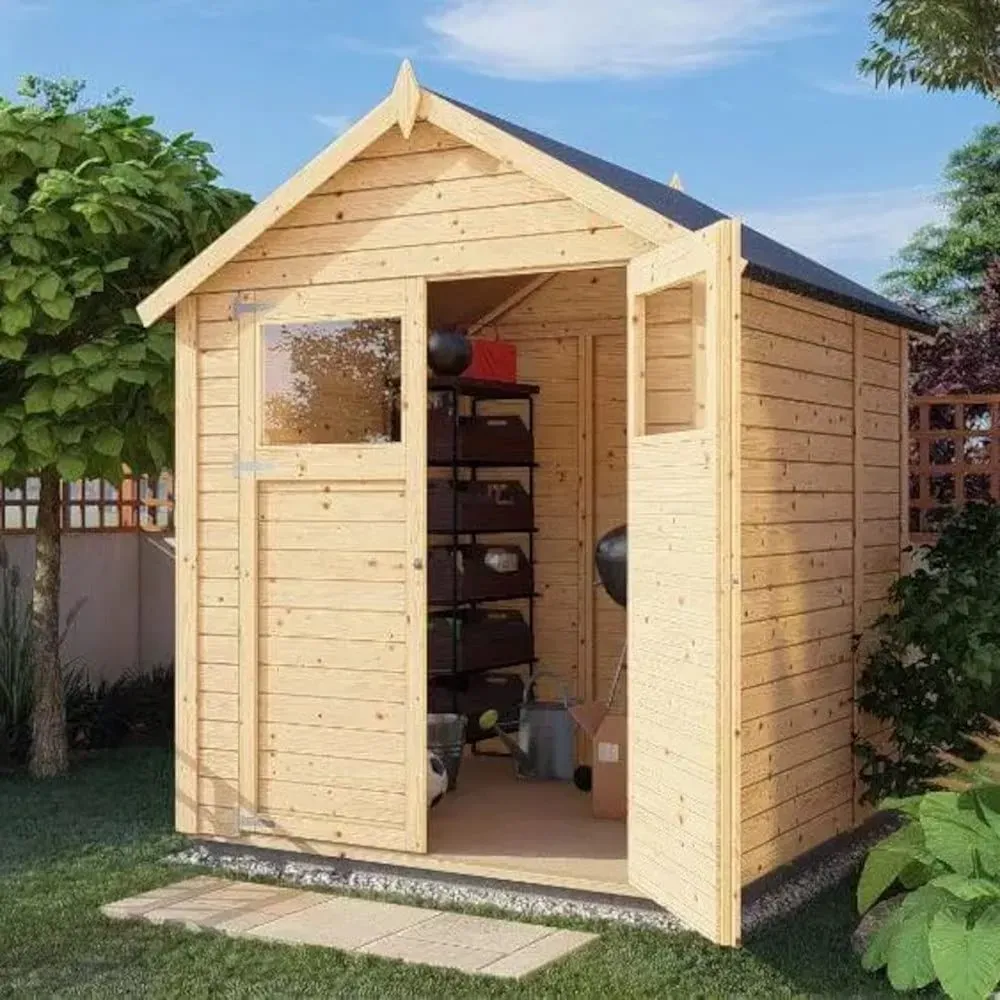 Kategorie: Gartenhäuser - Wiltec - GTIN:4251548101322 - [Design & Optik] - Das Wiltec Gartenhaus überzeugt durch seine natürliche Holzfarbe und klassische Form, die es zu einem stilvollen Blickfang machen. Es fügt sich harmonisch in jeden Garten ein und verleiht Ihrem Außenbereich eine elegante, naturnahe Atmosphäre. [Robust & Wetterfest] - Das hochwertige Holz ist mit einem Klarlack überzogen und bietet somit zuverlässigen Schutz vor Regen, Schnee und anderen Witterungseinflüssen. Das mit PVC beschichtete Holzdach sorgt zusätzlich für Widerstandsfähigkeit und Witterungsbeständigkeit. [Viel Stauraum] - Mit seinen kompakten Maßen von 136 x 58 x 127 cm bietet das Gartenhaus großzügigen Stauraum für Gartengeräte, Zubehör, Möbel oder Werkzeuge. Zwei integrierte Fächer und zwei große Flügeltüren ermöglichen eine strukturierte und leicht zugängliche Lagerung. [Vielseitig Nutzbar] - Ob als Geräteschrank, Gartenschrank oder Geräteschuppen - dieses Gartenhaus eignet sich ideal für verschiedene Einsatzbereiche. Es sorgt für Ordnung im Außenbereich und ermöglicht eine übersichtliche Aufbewahrung von Gartenutensilien aller Art. [Einfache Organisation] - Die durchdachte Innenaufteilung mit mehreren Fächern erleichtert die Sortierung und Lagerung von Gartenwerkzeugen und Zubehör. Auch größere Gegenstände wie Rasenmäher oder Klappmöbel finden problemlos Platz im Innenraum des Gartenhauses. - 181,99 Euro bei Amazon Marketplace Lawn & Garden - gefunden von billiger.de Ein praktisches Geräteschuppen mit Satteldach und 14mm Wandstärke, gut geeignet für den Einstieg. ![]() ![]()