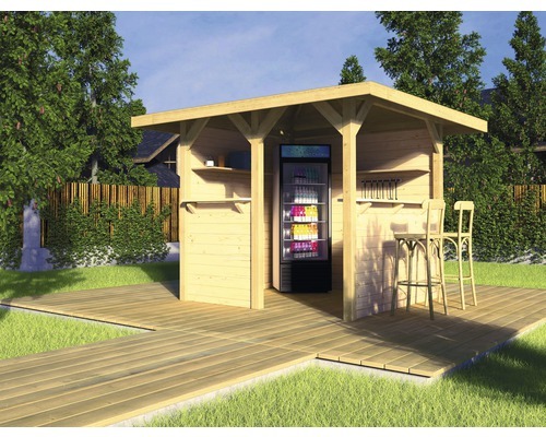 EAN: 4004581495572 - Freunde einladen|gemeinsam schöne Tage/Abende mit gutem Essen|tollen Gesprächen erleben. Hierzu läd die weka Man Cave Freizeithütte geradezu ein. Durch die beiden Rückwände sind Sie stets gut geschützt vor Wind|Wetter. Die Theke inkl. Verkleidung im Eingangsbereich bietet genügend Abstellmöglichkeiten für Ihre Getränke in geselliger Runde. Das moderne Flachdach rundet die Optik ab. Viel Vergnügen mit Ihrer weka Man Cave Freizeithütte! Die Pfosten sind kesseldruckimprägniert aus Kiefernholz. Die Wände, die Ablage|das Dach sind naturbelassen, Fichtenholz n.a. weka Gartenlaube 657 Gr. 1, 262 x 262cm, 16 mm Dachschalung und Bitumendachbelag, 2 RW, Tresenwand und Treseneingang Gut geschützt vor Regen, Wind und Sonne sind Sie mit der modernen WEKA Gartenlaube 657. Mit Ihrer schlichten, geradlinigen Optik passt sie in lauschige Ecken oder den Mittelpunkt Ihres Gartens und lädt zum gemütlichen Verweilen oder Grillabende mit der Familie oder Freunden ein. Set inklusive 2 x Rückwand, Tresenwand und TreseneingangFlachdach16 mm Massivholz mit Nut und Feder, naturbelassenPfosten: 9 x 9 cm, kesseldruckimprägniertmax. Schneelast: 1,25 kN/m MaßeSockelmaß Breite: 218cmSockelmaß Tiefe: 218cmAußenmaß Breite: 262cmAußenmaß Tiefe: 262cmAußenmaß Höhe/Firsthöhe: 230cmDachform: Flachdach 1-5 Dachüberstand seitlich: 22cmDachüberstand hinten: 22cmDachüberstand vorne: 22cmGrundfläche: 4.7524m Dachfläche: 6. - bei kaufland.de - aus Yadore Produktdaten Der Weka Holzbau Pavillon "Man Cave" mit Flachdach ist eine moderne und geräumige Alternative zur klassischen Gartenlaube. ![]()