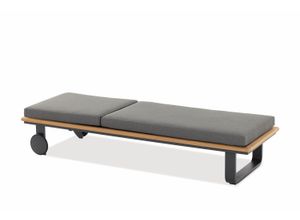 Gartenliegen Wohnen Haus Garten Garten Balkon Gartenmöbel - - Verwandeln Sie Ihren Garten in eine Wellness-Oase - mit dieser Amatio Gartenliege aus Aluminium in Anthrazit inklusive komfortabler Auflage. Lehnen Sie sich zurück und genießen Sie entspannte Stunden unter freiem Himmel! Maße und Details auf einen Blick Gesamtmaße: ca. 72x25x200 cm (BxHxT) Liegefläche: ca. 72x200 cm (BxL) Sitz-/Liegehöhe: ca. 25 cm Sitzhöhe inkl. Auflage: ca. 33 cm Rückenlehne: ca. 67,5 cm hoch Max. Belastbarkeit: ca. 120 kg Das pulverbeschichtete Aluminium-Gestell vereint Leichtigkeit mit beeindruckender Stabilität - ideal für den Outdoor-Einsatz. Die Netzbespannung aus Textilene® überzeugt durch ihre wetterfesten Eigenschaften: Das imprägnierte Material ist UV-beständig und punktet mit einer guten Lichtechtheit sowie ziemlich guten Abriebfestigkeit. Dank der Synthetikfaser-Oberfläche trocknet die Liege nach einem Regenschauer schnell und bleibt dabei formstabil. Die verstellbare Rückenlehne ermöglicht es Ihnen, die perfekte Liegeposition zu finden - ob zum Lesen, Sonnenbaden oder entspannten Dösen. Die inkludierte Auflage in Hellgrau mit Schaumstoff-Füllung (ca. 72x128x8 cm) sorgt für zusätzlichen Komfort. Der abnehmbare Bezug aus Polyester-Webstoff erleichtert die Pflege. Gönnen Sie sich mit dieser Amatio Gartenliege aus Aluminium in Anthrazit inklusive Auflage sonnige Auszeiten voller Komfort - der Sommer wartet auf Sie! FAQs Ist die Auflage waschbar? Der Bezug der Auflage ist abnehmbar, ... Eine rollbare Gartenliege aus Aluminium mit einem eleganten pearl-grey Bezug, die Flexibilität und Stil vereint. ![]() ![]() Brafab Belfort Gartenliege Aluminium schwarz, Bezug pearl-grey, rollbar