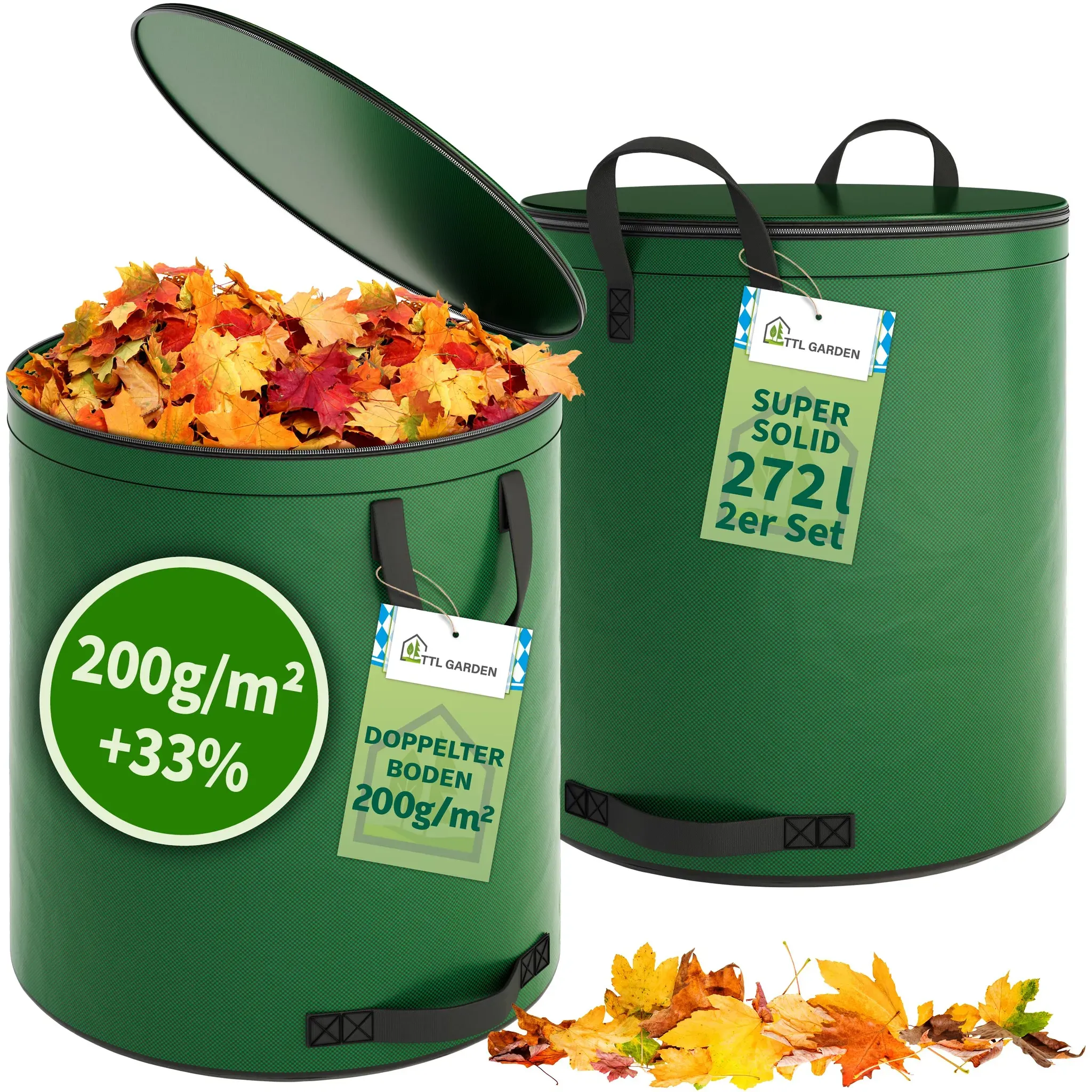 Kategorie: Pflanzenzubehör - Noor - GTIN:4013198756709 - Der Noor Gartensack Profi XL mit den Maßen 67 cm x 75 cm und einem Fassungsvermögen von 270 Litern in Grün ist ein äußerst vielseitiger Begleiter, sowohl für den Innen- als auch für den Außenbereich. Dieser Garten- und Transportsack ist ein unverzichtbares Utensil in jedem gut sortierten Haushalt. Er eignet sich hervorragend zum Aufbewahren, Tragen, Sortieren und Lagern und findet in Ihrem gesamten Haushalt oder Gewerbe vielfache Anwendungsmöglichkeiten. Entsorgung, Transport und Einkauf: Der Profi-Gartensack ist besonders gut geeignet für den Einsatz im Hof und Garten. Wohin mit dem Grünschnitt im Frühjahr und Herbst, wenn die Hecken ihren Großschnitt bekommen? Es ist eine Sache, im Frühling ein großes Feuer zu entfachen, aber eine ganz andere, das Laub das ganze Jahr über in einem kleinen Stadtgarten zu entsorgen. Der grüne Gartensack ermöglicht es Ihnen, Schnittholz, Laub, Grünabfälle und Unkraut nicht nur aus Ihrem Sichtfeld verschwinden zu lassen, sondern dient auch als praktische Transporttasche auf dem Weg zur Entsorgungsstelle. Auf größeren Flächen oder längeren Wegen, an denen Gartenabfälle anfallen, kann dieser Laubsack einfach während des Laubharkens oder Heckenschnitts mitgeführt und nach und nach befüllt werden. Die praktischen Tragegriffe ermöglichen es, die Säcke auch im befüllten Zustand zu ziehen und anzuheben. Das besonders belastbare, beschichtete PP/PE-Gewebe hält dabei selbst rauen Oberflächen ... Das TTL Garden 2er Set mit 272 Litern und doppeltem Boden bietet extra Stabilität und Reißfestigkeit, perfekt für schwere Gartenabfälle. ![]() ![]() TTL Garden 2x 272L SUPER SOLID Gartensack MIT DECKEL grün - DOPPELTER BODEN 2x200 gsm extra stabil & reißfest selbststehend 4 Griffe 2er Set Laubsack Abfallsack für Gras Laub Hecke Gartenabfall