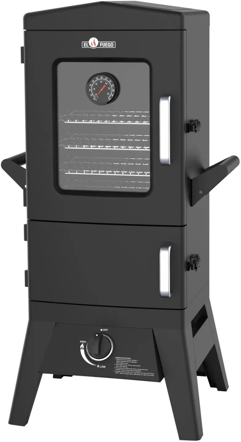 9 Händlerangebote bei billiger.de - Kategorie: Grills - El Fuego - Der El Fuego Gasgrill/Smoker Portland W2 in Schwarz bietet eine beeindruckende Vielseitigkeit und Leistungsfähigkeit für das Grillen und Räuchern im Freien. Mit Maßen von ca. 50 cm x 107 cm x 48 cm und einer Grillfläche von ca. 31 cm x 36 cm (x4) bietet er ausreichend Platz für verschiedene Zubereitungsarten. Mit einer Leistung von 3,5 kW und seinem robusten Stahlblech-Material ist dieser Grill bestens ausgestattet, um Ihre kulinarischen Vorstellungen umzusetzen. Die Fronttür verfügt über ein einzigartiges Glasfenster, das Ihnen einen Blick auf Ihr Gargut ermöglicht, sei es zur überprüfung des Garfortschritts oder einfach zum Bestaunen. Eine große Wasserschale sorgt für lange Garprozesse und ermöglicht es Ihnen, den Garprozess durch Zugabe von verschiedenen Flüssigkeiten zu variieren, um den Speisen einen besonderen Geschmack zu verleihen. Die mitgelieferte Räucherbox ermöglicht es Ihnen auch, Aromahölzer Ihrer Wahl zum Glimmen zu bringen und den Grill als Smoker zu betreiben, was eine zusätzliche Geschmacksdimension bietet. Mit dem Thermometer können Sie sicherstellen, dass Ihre Gerichte perfekt gegart werden. Dieser Grill ist ein multifunktionales Gerät, das als traditioneller Räucherofen, Dampfgarer oder herkömmlicher Grill verwendet werden kann. Dank seines großen Fassungsvermögens und der unkomplizierten Bedienung ist er eine Bereicherung für jede Grillparty. Das große Glasfenster in der Fronttür ... ![]() ![]() El Fuego Gasgrill Smoker "Portland W2" AY3176 - Schwarz