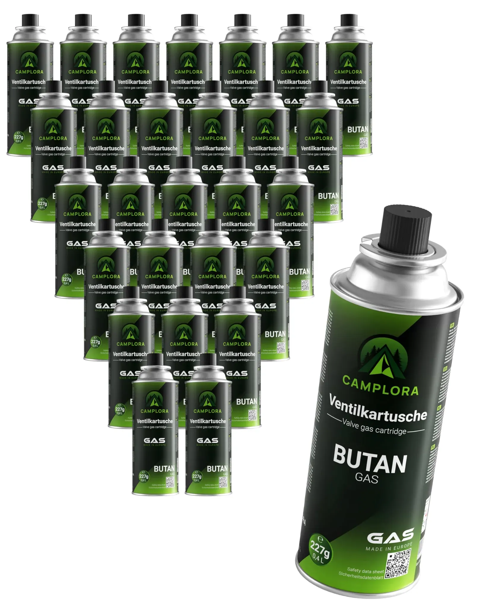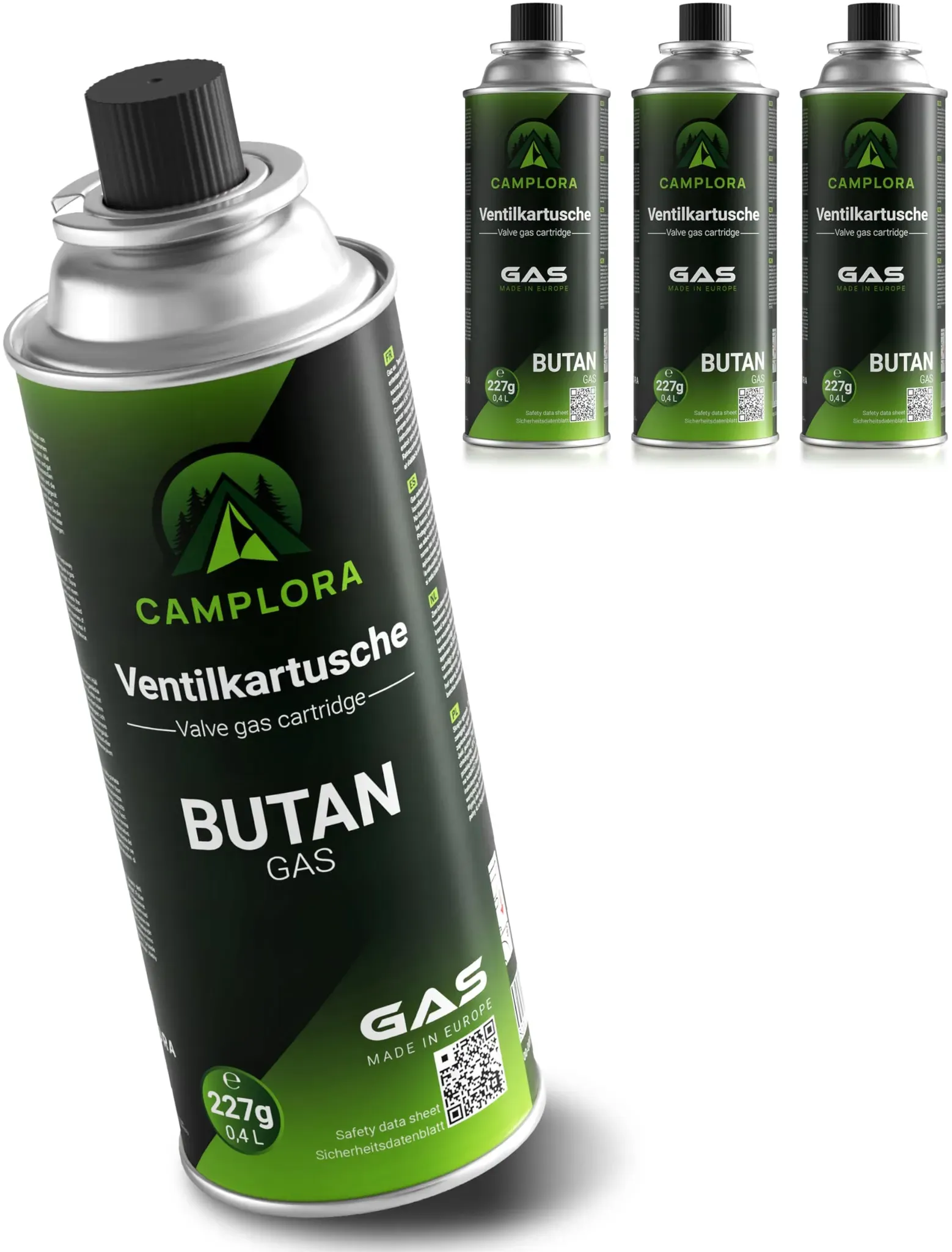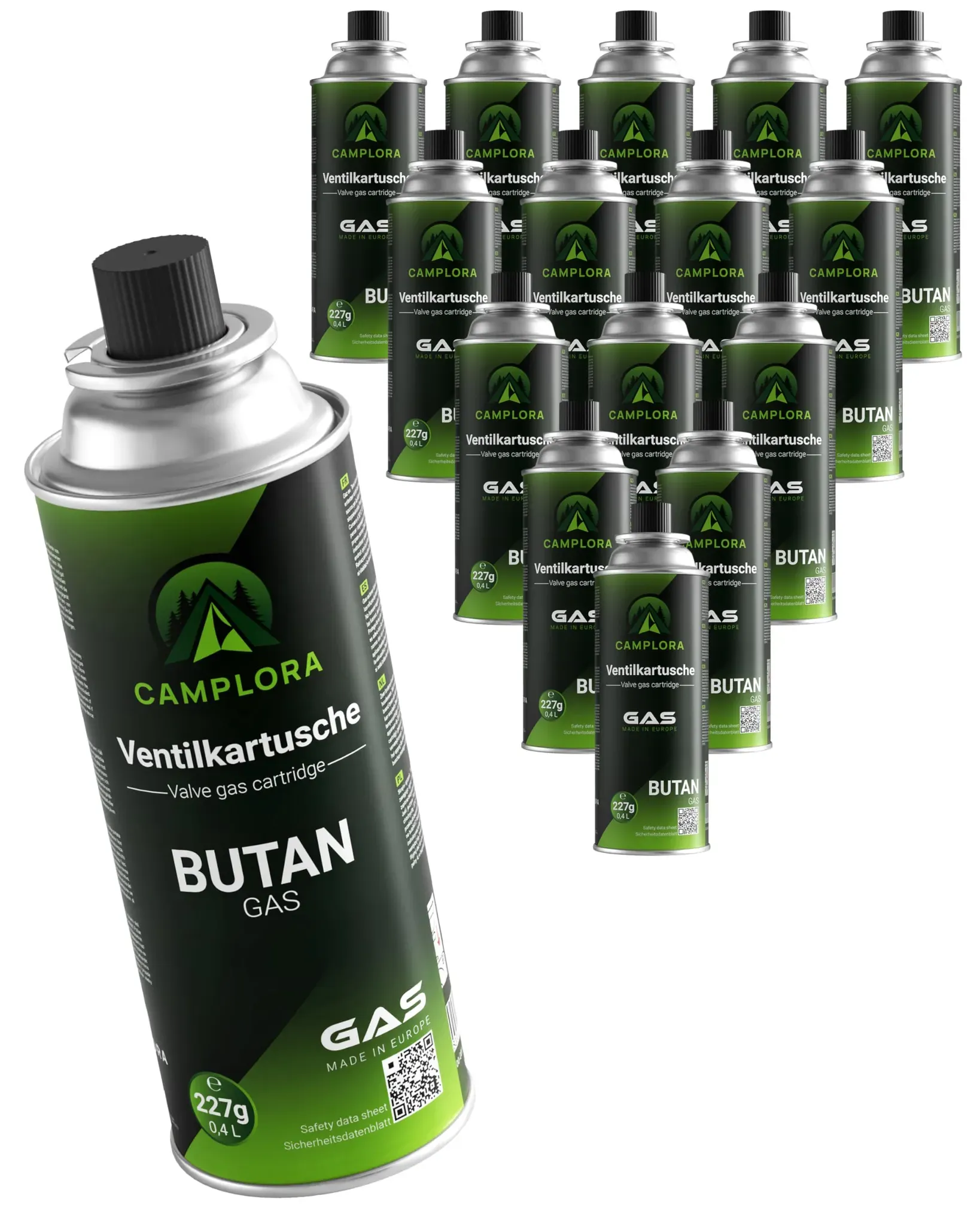 Kategorie: Kocher-Zubehör - Tolegano - GTIN:4255682800189 - PERFEKTE GASQUALITäT: CAMPLORA Butangaskartuschen haben eine hervorragende Brennleistung und steigern somit die Energieausbeute und die Effizienz pro Gaskartusche. Das Gas lässt sich zuverlässig zünden und verbrennt rauch- und geruchsfrei. ANWENDUNGSGEBIET: Diese Gaskartuschen sind ideal beim Camping, Angeln, bei Outdoor-Aktivitäten, auf Festivals oder ähnlichem. Unsere Butangas Kartusche passt in alle Geräte der Norm EN 521, die mit einer 227g Bajonett - Ventilkartusche betrieben werden wie Gasgrill, Gaskocher, Campingkocher, Gaskühlbox oder auch Bunsenbrenner, Lötbrenner oder Unkrautbrenner. HöCHSTE SICHERHEIT UND FLEXIBILITäT: Unsere MSF 1a Gaskartusche ist mit 227 g Butangas sehr ergiebig und erfüllt selbstverständlich die Sicherheitsnorm EN 417. Das standardisierte EN417 Ventil mit selbstdichtendem Sicherheitsventil sorgt dafür, dass die Gasflaschen auch in gefülltem Zustand abmontiert werden kann. Dadurch erhalten Sie höchste Flexibilität und können mit einer Ventilkartusche mehrere Geräte betreiben. EINFACHE MONTAGE UND NACHHALTIGKEIT: Zuerst den mitgelieferten roten Sicherheitsdeckel entfernen. Anschließend die Kartusche in das Gerät einstecken und festdrehen bis sie einrastet. Die leeren Kartuschen sind kein Müll sondern Rohstoffe, die fachgerecht recycelt werden. DETAILS: MFS-1a Butangaskartusche mit standardisiertem EN417-Ventil andere Bezeichnung: MSF1a-Ventil, Bajonett Ventil; Nettofüllgewicht: 227g ... Dieses 56er-Pack von Gazcamp bietet eine große Menge an Butan-Gaskartuschen für vielfältige Anwendungen. ![]() ![]() Gazcamp 56 Stück 227g Gaskartuschen Butan MSF-1A für Gaskocher/Campingkocher - 227g Kartuschen für Camping, Outdoor, Grill