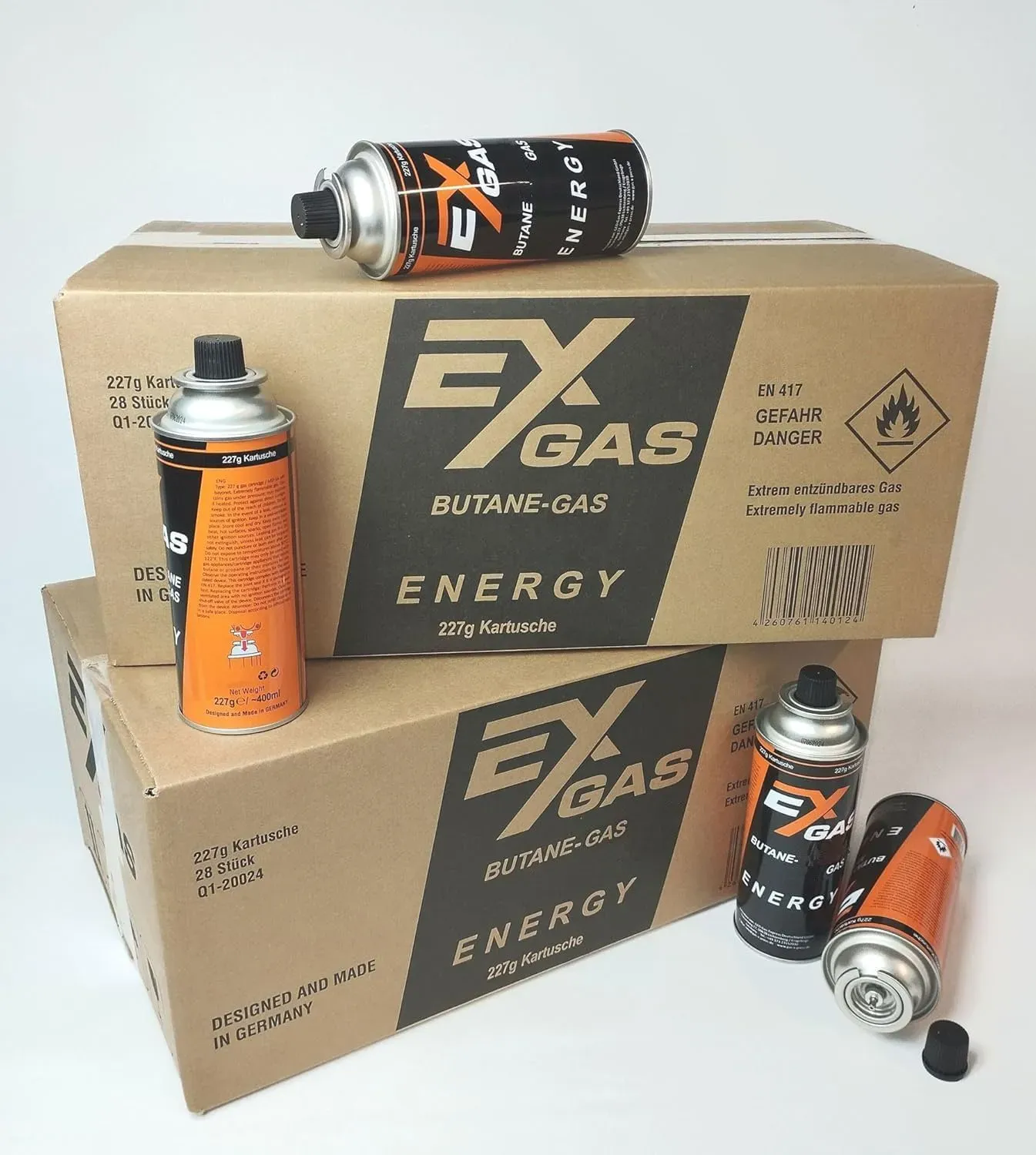 Kategorie: Kocher-Zubehör - Tolegano - GTIN:4255682800172 - PERFEKTE GASQUALITäT: CAMPLORA Butangaskartuschen haben eine hervorragende Brennleistung und steigern somit die Energieausbeute und die Effizienz pro Gaskartusche. Das Gas lässt sich zuverlässig zünden und verbrennt rauch- und geruchsfrei. ANWENDUNGSGEBIET: Diese Gaskartuschen sind ideal beim Camping, Angeln, bei Outdoor-Aktivitäten, auf Festivals oder ähnlichem. Unsere Butangas Kartusche passt in alle Geräte der Norm EN 521, die mit einer 227g Bajonett - Ventilkartusche betrieben werden wie Gasgrill, Gaskocher, Campingkocher, Gaskühlbox oder auch Bunsenbrenner, Lötbrenner oder Unkrautbrenner. HöCHSTE SICHERHEIT UND FLEXIBILITäT: Unsere MSF 1a Gaskartusche ist mit 227 g Butangas sehr ergiebig und erfüllt selbstverständlich die Sicherheitsnorm EN 417. Das standardisierte EN417 Ventil mit selbstdichtendem Sicherheitsventil sorgt dafür, dass die Gasflaschen auch in gefülltem Zustand abmontiert werden kann. Dadurch erhalten Sie höchste Flexibilität und können mit einer Ventilkartusche mehrere Geräte betreiben. EINFACHE MONTAGE UND NACHHALTIGKEIT: Zuerst den mitgelieferten roten Sicherheitsdeckel entfernen. Anschließend die Kartusche in das Gerät einstecken und festdrehen bis sie einrastet. Die leeren Kartuschen sind kein Müll sondern Rohstoffe, die fachgerecht recycelt werden. DETAILS: MFS-1a Butangaskartusche mit standardisiertem EN417-Ventil andere Bezeichnung: MSF1a-Ventil, Bajonett Ventil; Nettofüllgewicht: 227g ... Dieses 28er-Pack von Tolegano CAMPLORA bietet eine große Menge an Kartuschen zu einem attraktiven Preis. ![]() ![]() Tolegano CAMPLORA 28x 227g Butan Gaskartuschen mit MSF-1a Ventil für Grill, Campingkocher, Gasheizung, Gaskocher, camping gas, gaskartusche, Gaskartuschen 227g, Gasflasche butane gas cartridges