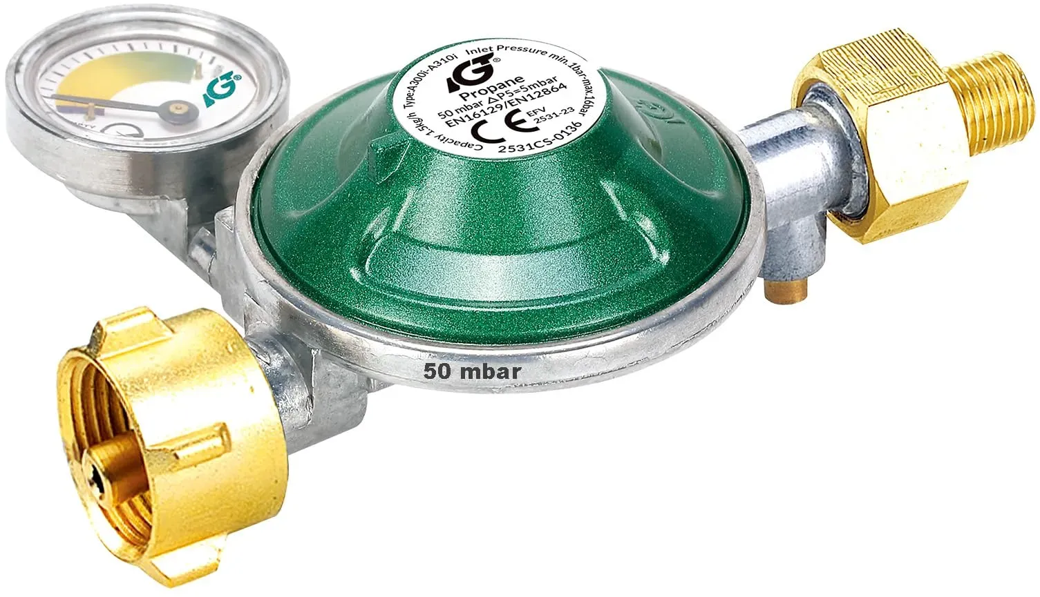Zustand: Neu - Schluche & Regler - CFH - 52113 - EAN: 4001845521138 - DRUCKMINDERER GASFLASCHE: Der Gas Druckminderer reguliert den Druck in der Gasflasche auf den erforderlichen Betriebsdruck des Gerts. Perfekt fr alle Schlauchltgerte, Anwrmbrenner und Abflammgerte, die mit Gas arbeiten STUFENLOS REGELBARER GASREGLER: Ausgangsdruck von 1 bis 4 bar stufenlos einstellbar, ideal zur przisen Regulierung des Gasflaschendrucks in Abstimmung auf die aktuellen Bedrfnisse HOCHWERTIGE, ZERTIFIZIERTE QUALITT: Der Gas Druckregler Made in Europe ist DVGW zertifiziert und erfllt sehr hohe Anforderungen an die Arbeitssicherheit. Auerdem ist der Regler umweltschonend verpackt TECHNISCHE DATEN: Der Gasdruckregler arbeitet mit einem Eingangsdruck von 4,2 bis 16 bar und einem Ausgangsdruck von 1-4 bar. Der Durchfluss betrgt 1,5-12 kg/h. Geeignet fr 5 kg, 11 kg und 33 kg Propangasflaschen CFH: Verlssliche Qualitt und Innovation fr Ihre Hand- und Heimwerker-Projekte. Vertrauen Sie auf unsere langjhrige Erfahrung und Expertise fr sicheres und einfaches Arbeiten - 8 Hndler im amazon.de Marketplace Dieser IGT Gasregler bietet zusätzliche Sicherheit durch eine Schlauchbruchsicherung und ein 360-Manometer. ![]() ![]() Integrated Gas Technologies ApS Gasregler 50 mbar mit 360°-Manometer Füllstandsanzeige Schlauchbruchsicherung Propangas Druckminderer Druckregler Camping Propan Butan