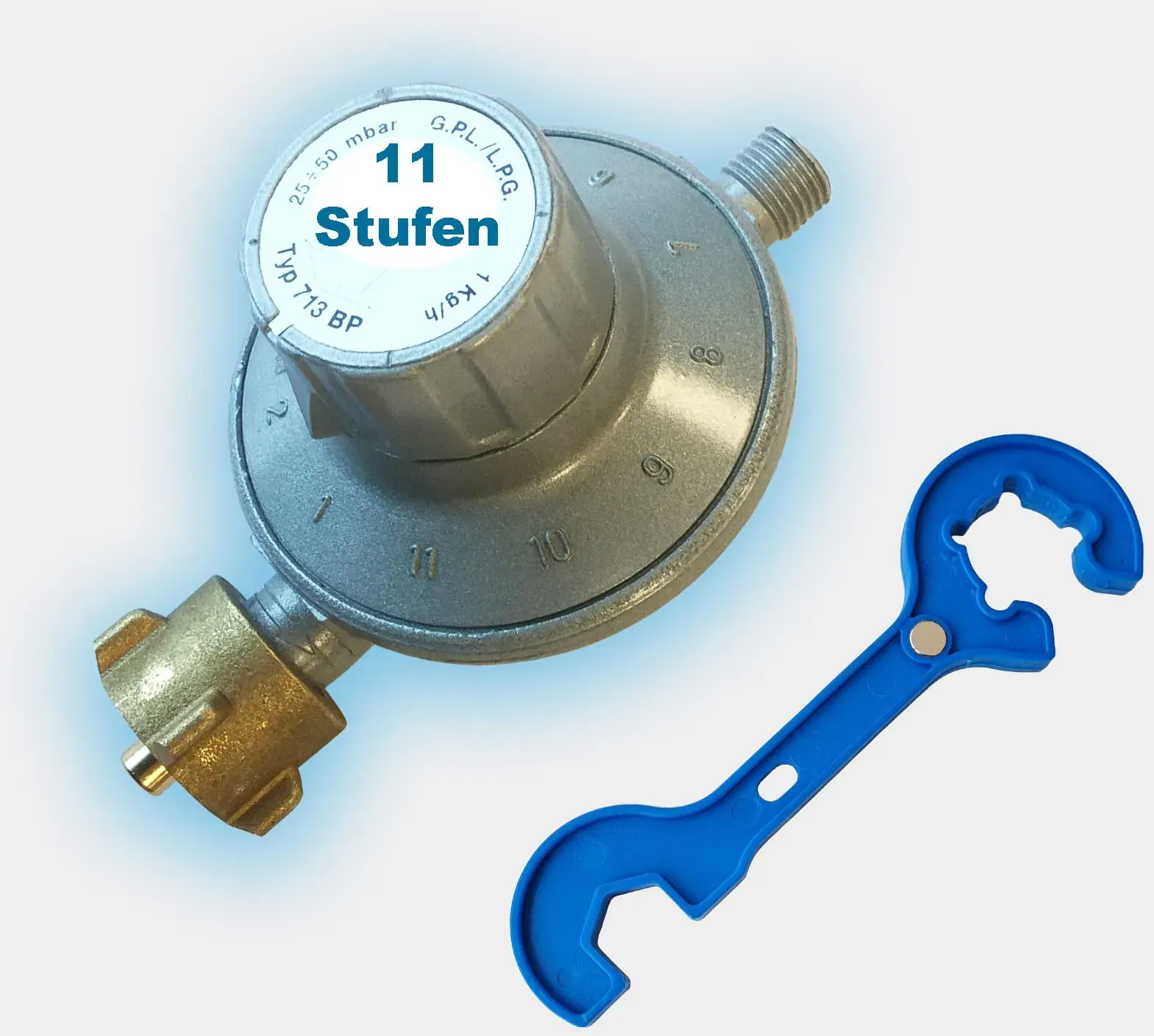 Zustand: Neu - Schluche & Regler - CFH - 52452 - EAN: 4001845524528 - DRUCKMINDERER GASFLASCHE ZUM CAMPEN: Ideal geeignet ist der Gas Druckminderer fr Gasgrills, Campingkocher, Campinglampen, Campingheizgerte und Heizstrahler. Kein Einsatz im Wohnmobil, Wohnwagen oder Caravan HOHE SICHERHEIT: Gasregler und Gasschlauch sind DVGW zertifiziert. Der Gasdruckregler ist nach DIN EN 16129 zertifiziert. Der Gasschlauch ist nach DIN EN 16436-1 und 16436-2 zertifiziert HOHE QUALITT: Der Gasdruckregler und die Schlauchleitung sind Made in Europe. Hochwertige Verarbeitung und nachhaltige Verpackung fr eine umweltfreundliche Nutzung VIELSEITIG EINSETZBAR: Mit Kleinflaschenanschluss fr 5 kg und 11 kg Propangasflaschen, nicht zur Anwendung in Caravans und Motorcaravans CFH: Verlssliche Qualitt und Innovation fr Ihre Hand- und Heimwerker-Projekte. Vertrauen Sie auf unsere langjhrige Erfahrung und Expertise fr sicheres und einfaches Arbeiten - 9 Hndler im amazon.de Marketplace Ein verstellbarer 11-Stufen-Regler von Cago Bluecraft, der eine präzise Druckanpassung zwischen 25-50 mbar ermöglicht. ![]() ![]() Cago Bluecraft Gas-Druck-Regler Gasregler verstellbar 11-Stufen-Regler 25-50 mbar regelbar Propan 30 Druckminderer inkl. Gasregler-Schlüssel