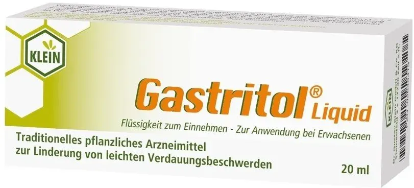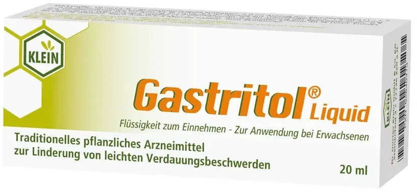 32.85 / 100 ml - Kategorie: Arzneimittel - Dr Gustav Klein GmbH & Co KG - GTIN:4150026404132 - PZN:02640413 - GASTRITOL Liquid Flüssigkeit zum Einnehmen 20 ml - 6,57 Euro bei Preisapo - gefunden von billiger.de Dieses Angebot ist das günstigste für Gastritol Liquid in der 20 ml GröÃ?e von einem bekannten Anbieter. ![]() ![]() Dr Gustav Klein GmbH & Co KG Gastritol Liquid 20 ml