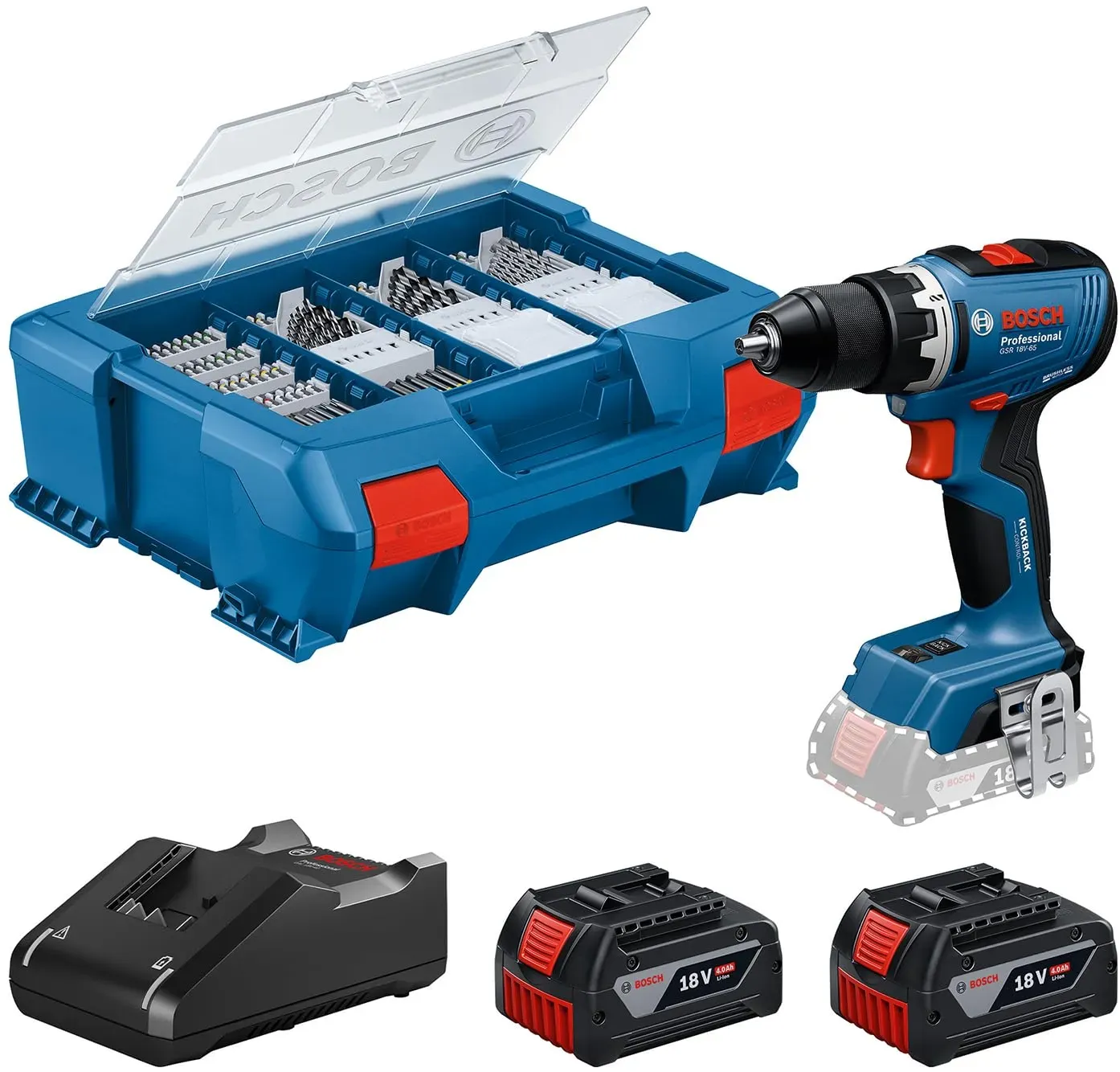 Auf Lager Versand durch AmazonBosch Professional 18V System Akku-Bohrschrauber GSB 18V-65 (bürstenloser Motor, Kopflänge 175, inkl 2x Akku GBA 4.0Ah, 82AC, L-Case)