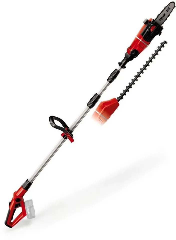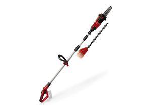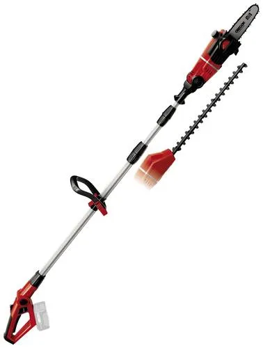 Einhell - EAN: 4006825601275 - . Lieferung ohne Akku und Ladegerät . 2-in-1-Multitool mit Heckenscheren- und Kettensägenaufsatz . Alu-Teleskopstiel stufenlos ausziehbar von 88 bis 182 cm . Krallenanschlag verhindert Abrutschen beim Sägen . Zusatzhandgriff ist verstellbar und mit Schnellverschluss . Aufsatz kann um 90 Grad gedreht und angepasst werden . 7-fach neigbarer Motorkopf und 4-fach neigbarer Hauptgriff . Lasergeschnittene und diamantgeschliffene Messer aus Stahl . Automatische Kettenschmierung und robustes Metall-Getriebe . Kettenspannung und Kettenwechsel erfolgt werkzeuglos . Mit OREGON-Qualitätsschwert und -kette . Stabiler Köcher für Lagerung und Transport Merkmale: Ausführung: Akku Leistung: 18 V weitere Produktinformationen: Akkukapazität: 2,0, 2,5, 3,0, 4,0, 5,2Ah (nicht im Lieferumfang) Heckenscherenaufsatz: Schnittlänge: 40 cm Messerlänge: 45 cm Schnittgeschwindigkeit: 1700 U/min Schnittleistung: 16 mm Kettensägenaufsatz: Schwertlänge: 20 cm Schnittlänge: 17 cm Kettentyp: 3/8 Zoll Kettengeschwindigkeit: 3,76 m/s Maße: (LxBxH) 183 x 13 x 17 cm Gewicht: 3,9 kg Lieferung: inkl. Heckenscherenaufsatz, Kettensägenaufsatz, Köcher, Tragegurt - bei bueromarkt-ag.de - aus Yadore Produktdaten voelkner.de bietet hier einen guten Preis, der knapp über den günstigsten liegt, aber immer noch sehr attraktiv ist. ![]() ![]() Einhell 3410800 Power X-Change GE-HC 18 Li T- Solo Akku Hochentaster, Heckenschere ohne Akku 18V Li-Ion 88cm
