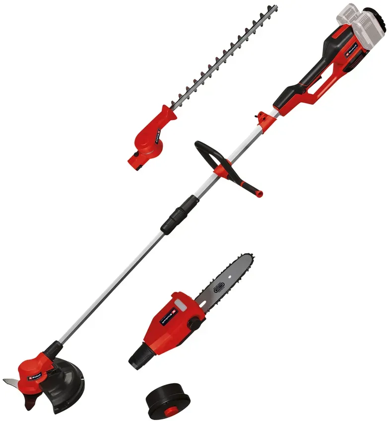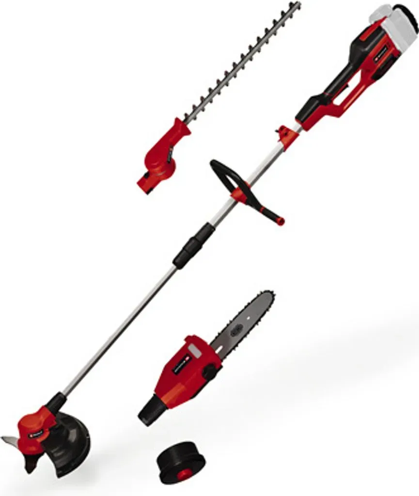 Kategorie: Multifunktionswerkzeuge - Einhell - GTIN:4006825651638 - Mitglied der Power X-Change FamilieEinhell Brushless Motor - mit bürstenlosem ElektromotorMesser aus lasergeschnittenem und diamantgeschliffenem StahlHeckenscherenkopf 7-fach neigbarOREGON-Qualitätsschwert und KetteLieferung ohne Akku und ohne Ladegerät (separat erhältlich) .Das Einhell Akku-Multifunktionswerkzeug GE-LM 36/4in1 Li-Solo ist ein Mitglied der flexiblen Power X-Change-Reihe. Das Multifunktionswerkzeug wird mit einem kraftvollen, langlebigen Brushless Energy-Motor angetrieben. Die Messer bestehen aus lasergeschnittenem und diamantgeschliffenem Stahl und OREGON-Qualitätsschwert und kette. Der ölbehälter sorgt für die automatische Kettenschmierung. Der Heckenscherenkopf ist 7-fach neigbar, die Fadenspule ist mit Tippautomatik ausgerüstet, zudem verfügt das Werkzeug über ein 3-Zahn-Messer, eine Verlängerungsstange für höhere Hecken und äste, einen verstellbaren Zusatzhandgriff und einen Tragegurt. Die Lieferung erfolgt ohne Akku und Ladegerät, diese sind separat erhältlich. .Ausstattung- Mitglied der Power X-Change Familie, 2x18V Batterie notwendig - Einhell Brushless Motor - mit bürstenlosem Elektromotor - Messer aus lasergeschnittenem und diamantgeschliffenem Stahl - Heckenscherenkopf 7-fach neigbar - OREGON-Qualitätsschwert und Kette - ölbehälter für automatische Kettenschmierung - Fadenspule mit Tippautomatik - Hochwertiges 3-Zahn-Messer - Verstellbarer Zusatzhandgriff - Verlängerungsstange ... Dieses Angebot ist empfehlenswert, da es das Akku-Multifunktions-Werkzeug mit 36Volt (2x18V) als Solo-Gerät zu einem sehr guten Preis anbietet. ![]() ![]() Akku-Multifunktions-Werkzeug GE-LM 36/4in1 Li-Solo, 36Volt (2x18V), Rasentrimmer rot/schwarz, ohne Akku und Ladegerät, 4in1: Motorsense, Heckenschere, Hochentaster