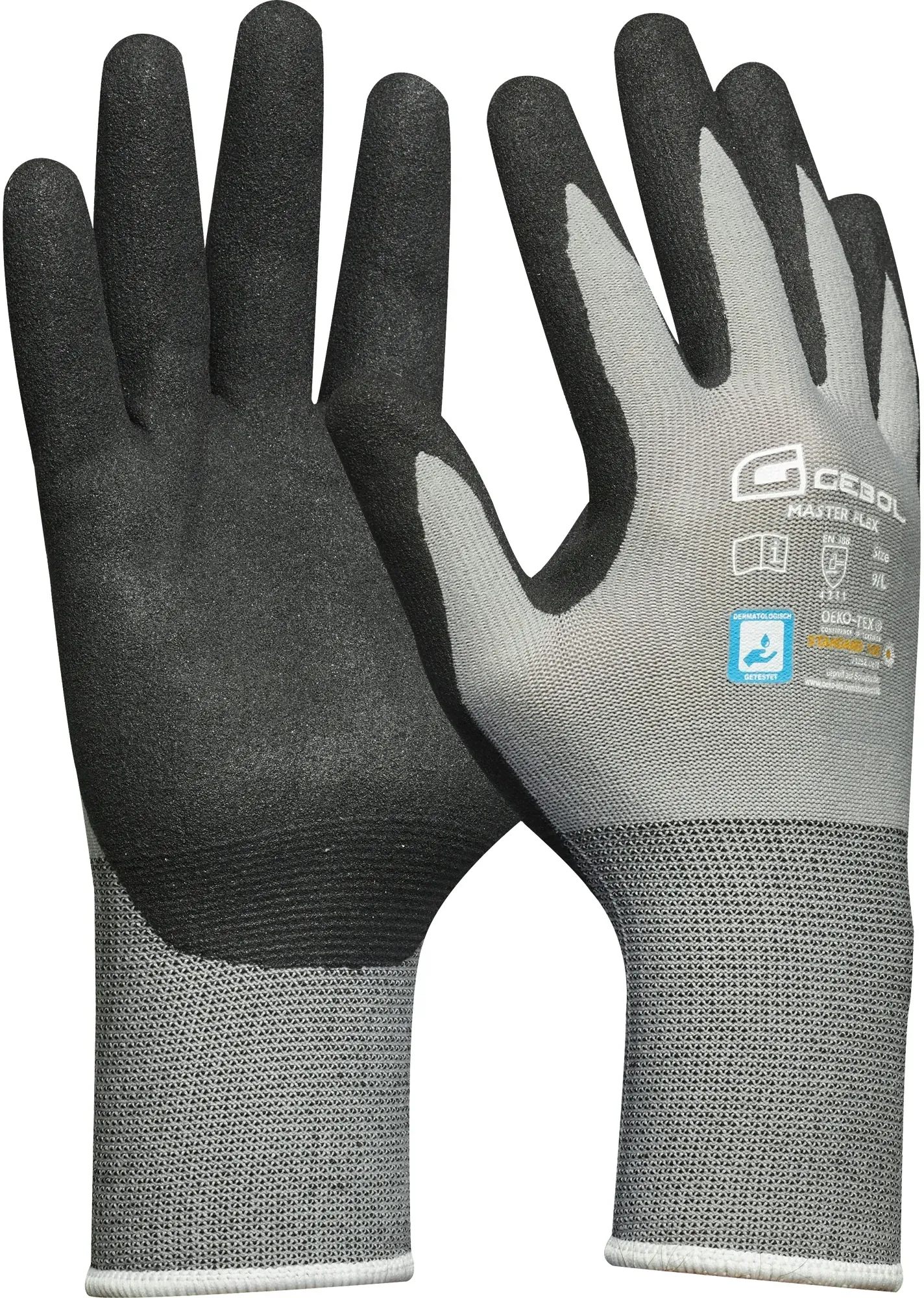 Gebol master flex META PreisvergleichMit dem Meta-Preisvergleich suchen Sie gleichzeitig bei den großen Preisvergleich Portalen!Jetzt live Suche nach gebol master flex starten! Gebol master flex KaufberatungDer Gebol Master Flex ist ein nahtloser, leichter Montage- bzw. Arbeitshandschuh mit einer PU-Nitril-Beschichtung und sogenanntem Sandy Finish, der besonders abriebfest, strapazierfähig und atmungsaktiv ist. Er bietet eine sehr gute Passform, hohen Tragekomfort und optimale Fingerfertigkeit, wodurch die Hände trocken bleiben und trotzdem gut geschützt sind[1][3][4][6]. Wichtige Produktmerkmale, die bei diesem Modell beliebt sind: