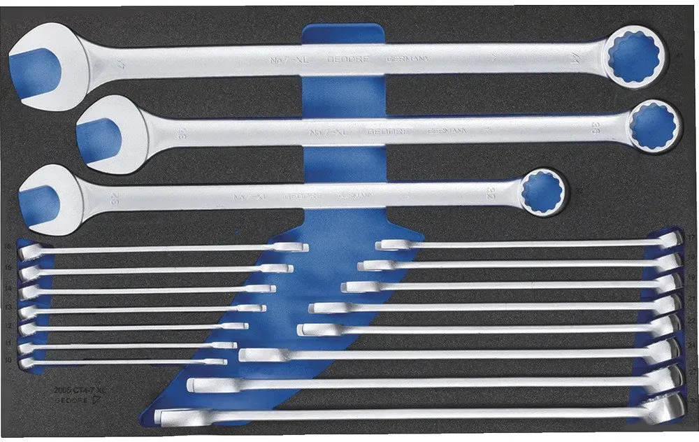Zustand: Neu - Ringmaulschlüssel - GEDORE Gedore Werkzeugfabrik GmbH & Co. KG - 2005 CT4-7 XL - EAN: 4010886935163 - Einfache optische Vollständigkeitsprüfung durch 2-farbige Schaumstoffeinlagen Besonders geeignet für Arbeiten in sensiblen Brereichen, in denen sichergestellt werden muss, das kein Werkzeug zurückbleibt Unterlage blau, Oberlage schwarz, blau signalisiert fehlendes Werkzeug GEDORE Qualität - bei Amazon.de Dieser Ring-/Gabelschlüsselsatz ist eine umfassende Ergänzung für jede Werkstatt und bietet ein gutes Preis-Leistungs-Verhältnis. ![]() ![]() Gedore Ring-/Gabelschlüsselsatz 2005 CT4-7 XL