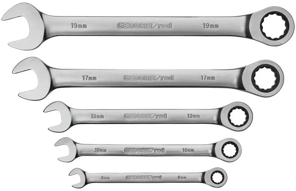 lieferbar-in 3-4 Werktagen bei dirGedore Drehmomentschlüssel GEDORE Red Ringratschen-Maulschlüssel-Satz silberfarben