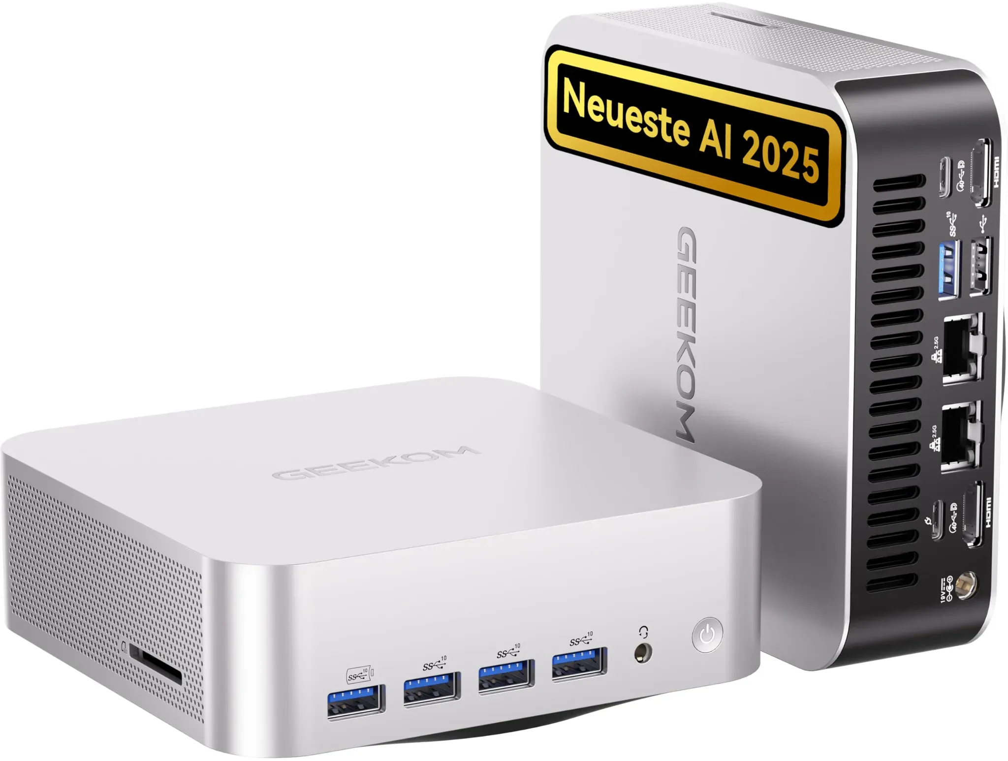 Zustand: Neu - Mini-PCs - GEEKOM - A9 Max - EAN: 0810190721728 - AI-Flaggschiff neu definiert: Der A9 Max mini computer mit AMD Ryzen AI 9 HX 370 ('Strix Point') bietet bis zu 80 TOPS KI-Leistung (50 TOPS NPU + 30 TOPS GPU/CPU), ermöglicht Copilot+-Erlebnisse der nächsten Generation, lokalen LLM-Betrieb (LM Studio/Ollama) und anspruchsvolle AI-Inhaltserstellung (Stable Diffusion/Topaz AI) bei effizienter Wärmeregulierung. ð™€ð™˜ð™ð™©ð™š ð™‹ð™§ð™¤ð™™ð™ªð™ ð™©ð™š ð™¨ð™žð™˜ð™ð™šð™§: ð™‰ð™ªð™§ ð™—ð™šð™ž ð˜¼ð™¢ð™–ð™¯ð™¤ð™£ & ð™‚ð™€ð™€ð™†ð™Šð™ˆ ð™Šð™›ð™›ð™žð™¯ð™žð™šð™¡ð™¡ð™šð™§ ð™’ð™šð™—ð™¨ð™žð™©ð™š | ð™‘ð™šð™§ð™¢ð™šð™žð™™ð™šð™£ ð™Žð™žð™š ð™äð™¡ð™¨ð™˜ð™ð™ªð™£ð™œð™šð™£. Grafikpower für Gaming und mehr: Die integrierte AMD Radeon 890M-Grafik (16 RDNA3.5-CUs) im A9 Max mini gaming PC bietet Leistung wie eine dedizierte Einsteiger-GPU, meistert Spiele wie Valorant, Fortnite, LoL und CS2 in 1080p High mit hohen FPS, unterstützt FidelityFX Super Resolution (FSR) für optimale Performance und ermöglicht flüssige 4K-Wiedergabe sowie leichtes 3D-Rendering. Professionelle Kühlung: Das IceBlast 2.0-System des A9 Max mini-pc (mit Kupferkühler, Doppel-Heatpipes und Hochleistungslüfter) bietet 52% bessere Kühlleistung als Standardlösungen. Das optimierte Luftstromdesign mit seitlichem Lufteinlass und hinterem Auslass verhindert Überhitzung effektiv - für dauerhaft hohe Performance bei Gaming und anspruchsvollen ... ![]() ![]() GEEKOM AI Mini PC A9 Max mit AMD Ryzen AI 9 HX 370(12C/24T, bis zu 5.1GHz), 32GB DDR5+ 2TB SSD, 2.5G Dual-LAN Mini Computer Windows 11 pro mit 2 USB4|HDMI2.1|Wi Fi 7&BT 5.4 für Alle Einsatzszenarien
