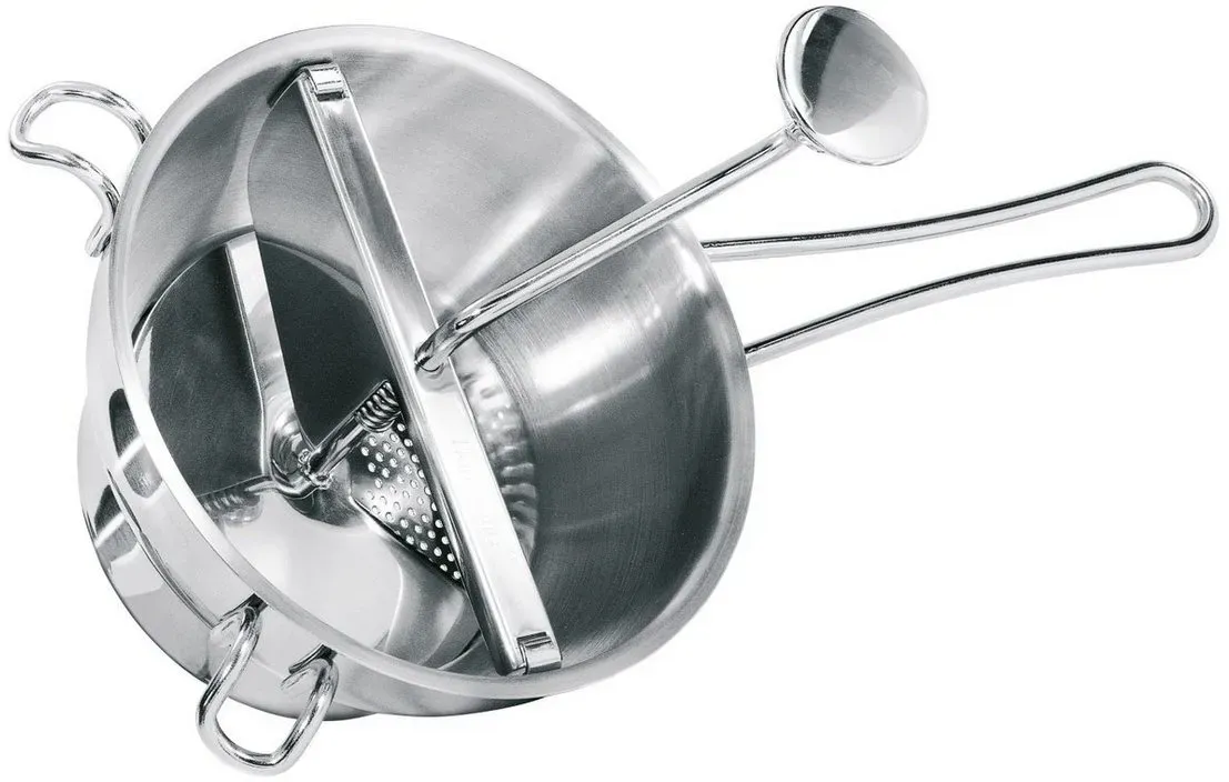 Zustand: Neu - Reiben - GEFU - 24200 GF24200 - EAN: 4051709410603 EAN: 4006664242004 EAN: 4006664000208 - MULTIFUNKTION: Die manuelle Passiermaschine von GEFU unterstützt bei der Herstellung von Gelee, Marmelade, Brei und Saucen und ist so in vielen Bereichen der Küche ein wertvoller Küchenhelfer ROBUSTE STAHLMÜHLE: Die Passiermühle kommt mit zwei auswechselbaren Lochscheiben aus robustem, rostfreiem Edelstahl - sowohl Siebe als auch Mühle lassen sich einfach in der Spülmaschine reinigen SCHNELLES ZERKLEINERN: Mit der originalen Flotten Lotte geht das Passieren und Reiben von frischem Obst und Gemüse auf die ideale Größe einfach und ohne elektrische Geräte von der Hand VON FEIN BIS GROB: Die zwei unterschiedlichen Größen des Passiersiebs erlauben die kraft- und zeitsparende Zubereitung von besonders feinen Speisen wie Püree bis hin zu gröberen Marmeladen oder Apfelmus EINFACHE REINIGUNG: Alle Teile sind spülmaschinengeeignet und leicht zerlegbar, sodass das Passiergerät nach dem Gebrauch schnell, gründlich und unkompliziert gereinigt werden kann - 5 Händler im amazon.de Marketplace ![]() ![]() Gefu 24200 Passiergerät"Original Flotte Lotte"