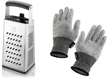 Verfügbarkeit: 3-4 Werktage - Kategorie: Reiben & Küchenreiben - GEFU - GTIN:4006664107617 - Perfekter Küchenhelfer Für all deine Mixer-, Schneid-, Hobel- und Reibzüge: die GEFU® All-in-one-Vierkantreibe mit Schnittschutzhandschuh. Dank der extrascharfen V-Klinge und DIAMOND LASER CUT-Technologie gelingen präzise und sichere Schnitte im Handumdrehen. Genieße sorglose Koch-Erlebnisse! Was erhalte ich? Vierkantreibe V-Cut Schnittschutzhandschuh Securo Auf einen Blick vielseitige Reibe mit extrem scharfer V-Klinge Diamant-Lasertechnologie für perfekte Schneiden ermöglicht grobe sowie zarte Flocken praktischemSchnittschutzhandschuhe für sicheren Umgang mit den schäfsten Küchenwerkzeugen elastische und bequeme Passform Universalgröße, für Rechts- und Linkshänder geeignet zum Schneiden, Reiben, Hobeln und Mixen spülmaschinengeeignet und waschbar Maße Vierkantreibe (L x B x H): ca. 12 x 9 x 28 cm Schnittschutzhandschuh (L x B): ca. 25,5 x 16,5 cm Material Vierkantreibe: Edelstahl, Kunststoff, Klingenstahl Handschuh: Kunststoff, Polyester, Glasfaser 2 Hersteller Identifikationsnummer GTIN: 4006664107617 - 64,99 Euro bei QVC - gefunden von billiger.de Diese Multifunktionsreibe V-CUT aus Edelstahl ist verstellbar und bietet eine hohe Vielseitigkeit in der Küche. ![]() ![]() Multifunktionsreibe V-CUT - Edelstahl verstellbar eBay Küchenreibe Gemüsereibe Reiben