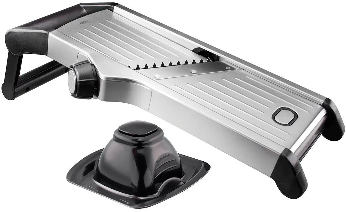 2 Händlerangebote bei billiger.de - Kategorie: Reiben & Küchenreiben - GEFU - WELO zaubert aus leckerem Obst und Gemüse in Nullkommanichts wunderbar gleichmäßige Juliennestreifen sowie glatte oder gewellte Scheiben von hauchzart bis knackfrisch. Perfekt geeignet für Zwiebeln, Gurken, Kohl, Karotten, Kartoffeln, äpfel und vieles mehr. - GTIN:4006664557108 ![]() ![]() GEFU Gemüsehobel WELO | Verstellbare Klingen für Juliennestreifen & Scheiben | Edelstahl, rutschfest, Sicherheitskappe, spülmaschinengeeignet
