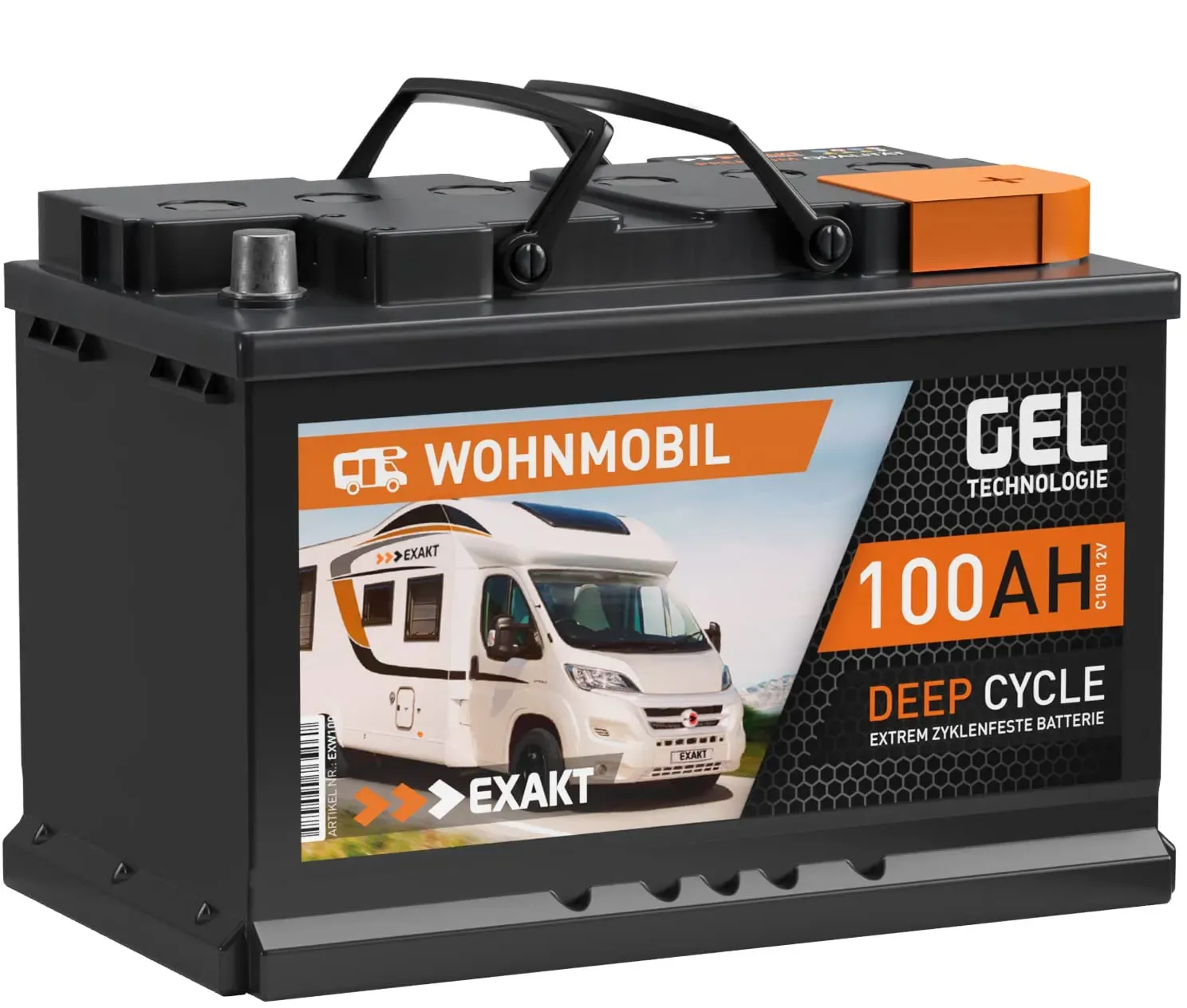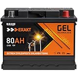 Kategorie: Caravan-Zubehör - Exakt - GTIN:4260713243354 - Angebot mit Nullsteuersatz für Privatkunden. Es gelten unsere AGB. GEL Batterie 12V 100Ah mit modernster Deep Cycle GEL Technologie - ein sehr zyklenfester Gel Akku. Kapazität: 100Ah (C100), Spannung: 12Volt, Abmessungen (L x B x H): 278 x 175 x 190mm, Polanordnung: 0 (+Pol Rechts), Anschlüsse: Normalpol. Gewicht: ca. 20,3kg. Auslieferung: Sofort einsatzbereit. Die zyklenfesten EXAKT Gel Batterien sind langlebige Speicherbatterien speziell für den Einsatz im Boot, Wohnmobil und für die Verwendung als Solarbatterie bestens geeignet. Dank fortschrittlicher GEL-Technologie und verstärkten Bleizellen eignet sich dieser Batterietyp besonders für regelmäßige Lade- / Entladevorgänge und den damit verbundenen anspruchsvollen Einsatz. Diese Batterie hat ein hervorragendes Dauerstromverhalten und ist für besonders energieintensive Verbraucher geeignet. Herausragende Ladeeigenschaften mit minimalem Ladeverlust und hohem Wirkungsgrad zeichnen die Gel Batterie von EXAKT aus. Außerdem überzeugt der Gel Akku mit einem schnellen Ladevorgang und hat eine geringere Selbstentladung. Die Gel Batterie ist absolut auslaufsicher, gasungsfrei, rüttelfest und in allen Lagen flexibel einbaubar. Die wartungsfeie Technologie und robustes Batteriegehäuse mit VRLA Ventilen bieten dabei eine hohe Betriebssicherheit. Ideal als Wohnmobil Batterie, Wohnwagen Batterie, Solarbatterie, Versorgungsbatterie, Camping, Freizeit, Bootsbatterie, Marine ... ![]() ![]() EXAKT GEL Batterie 12V 100Ah Bootsbatterie Marine Schiff Versorgung Solarbatterie Gelbatterie Wohnmobil Batterie Gel Akku ersetzt 80Ah 90Ah