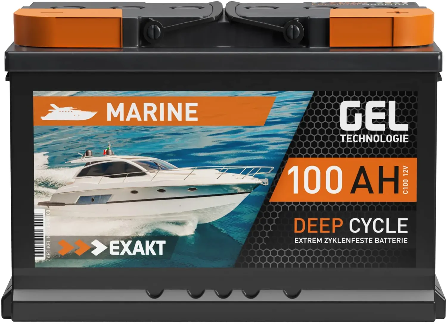 Zustand: Neu - Deep-Cycle-Batterien - Exakt - EXM100 - EAN: 4260713243330 - Angebot mit Nullsteuersatz für Privatkunden. Es gelten unsere AGB. GEL Batterie 12V 100Ah mit modernster Deep Cycle GEL Technologie - ein sehr zyklenfester Gel Akku. Kapazität: 100Ah (C100), Spannung: 12Volt, Abmessungen (L x B x H): 278 x 175 x 190mm, Polanordnung: 0 (+Pol Rechts), Anschlüsse: Normalpol. Gewicht: ca. 20,3kg. Auslieferung: Sofort einsatzbereit. Die zyklenfesten EXAKT Gel Batterien sind langlebige Speicherbatterien speziell für den Einsatz im Boot, Wohnmobil und für die Verwendung als Solarbatterie bestens geeignet. Dank fortschrittlicher GEL-Technologie und verstärkten Bleizellen eignet sich dieser Batterietyp besonders für regelmäßige Lade- / Entladevorgänge und den damit verbundenen anspruchsvollen Einsatz. Diese Batterie hat ein hervorragendes Dauerstromverhalten und ist für besonders energieintensive Verbraucher geeignet. Herausragende Ladeeigenschaften mit minimalem Ladeverlust und hohem Wirkungsgrad zeichnen die Gel Batterie von EXAKT aus. Außerdem überzeugt der Gel Akku mit einem schnellen Ladevorgang und hat eine geringere Selbstentladung. Die Gel Batterie ist absolut auslaufsicher, gasungsfrei, rüttelfest und in allen Lagen flexibel einbaubar. Die wartungsfeie Technologie und robustes Batteriegehäuse mit VRLA Ventilen bieten dabei eine hohe Betriebssicherheit. Ideal als Bootsbatterie, Marine Batterie für Yacht und Schiff, Wohnmobil Batterie, Wohnwagen Batterie, ... ![]() ![]() EXAKT GEL Batterie 12V 100Ah Bootsbatterie Marine Schiff Versorgung Solarbatterie Gelbatterie Wohnmobil Batterie Gel Akku ersetzt 80Ah 90Ah