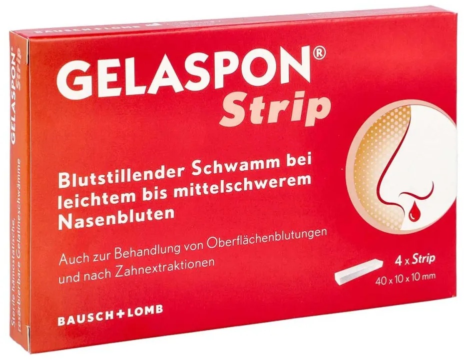 Kategorie: Arzneimittel - Bausch + Lomb - GTIN:4030571007814 - PZN:17940575 - Produkteigenschaften: Gelaspon Strip Gelaspon Strip wird aus 100 % gereinigter Schweine-Gelatine hergestellt und ist für die Verwendung als resorbierbarer hämostatischer Schwamm zur Blutstillung ... - 11,19 Euro bei Mycare - gefunden von billiger.de ![]() ![]() Bausch + Lomb GELASPON Strip 1x1x4 cm Gelatineschwamm 4 St